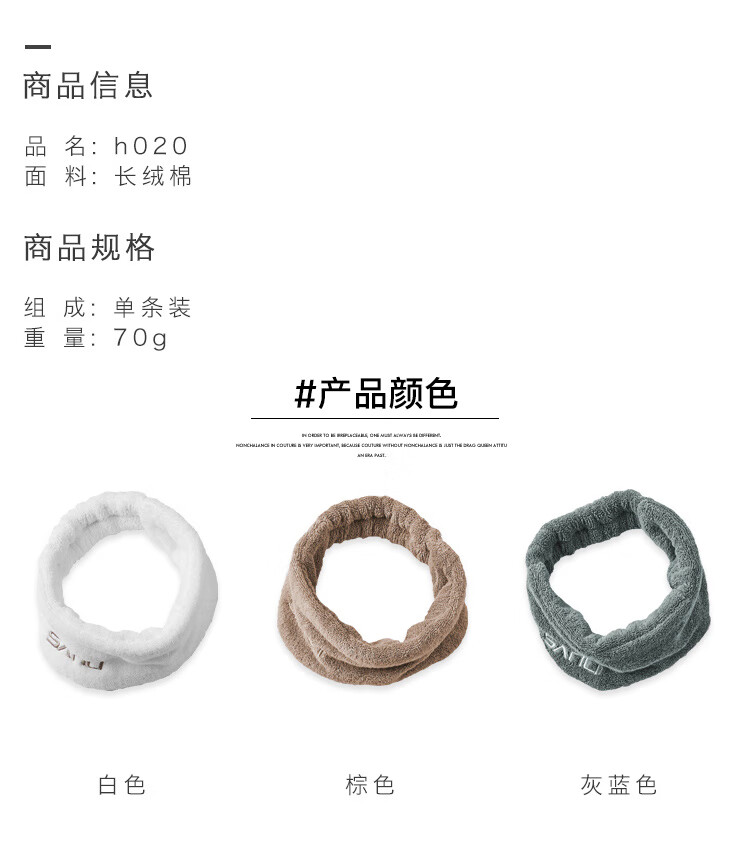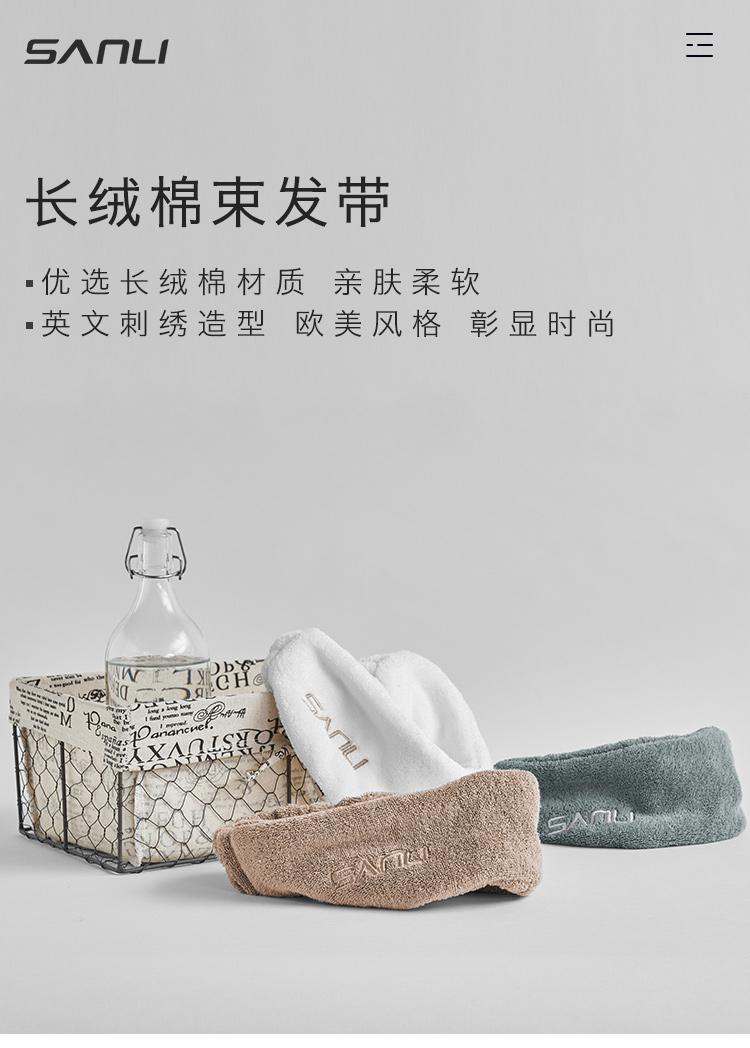 三利 长绒棉洗脸束发带 甜美森女系头饰发箍 化妆美容卸妆包头巾 棕色 自营