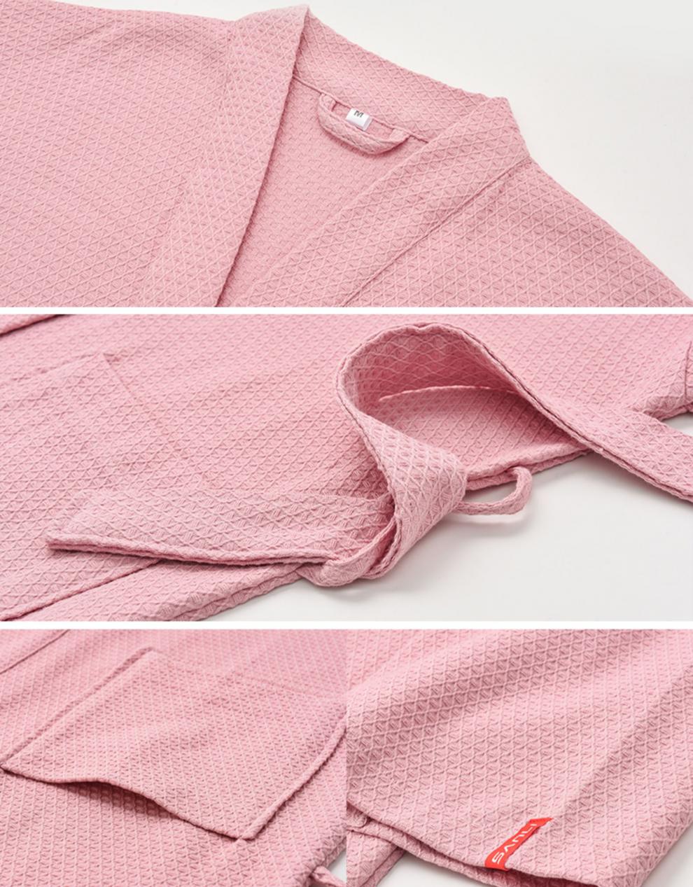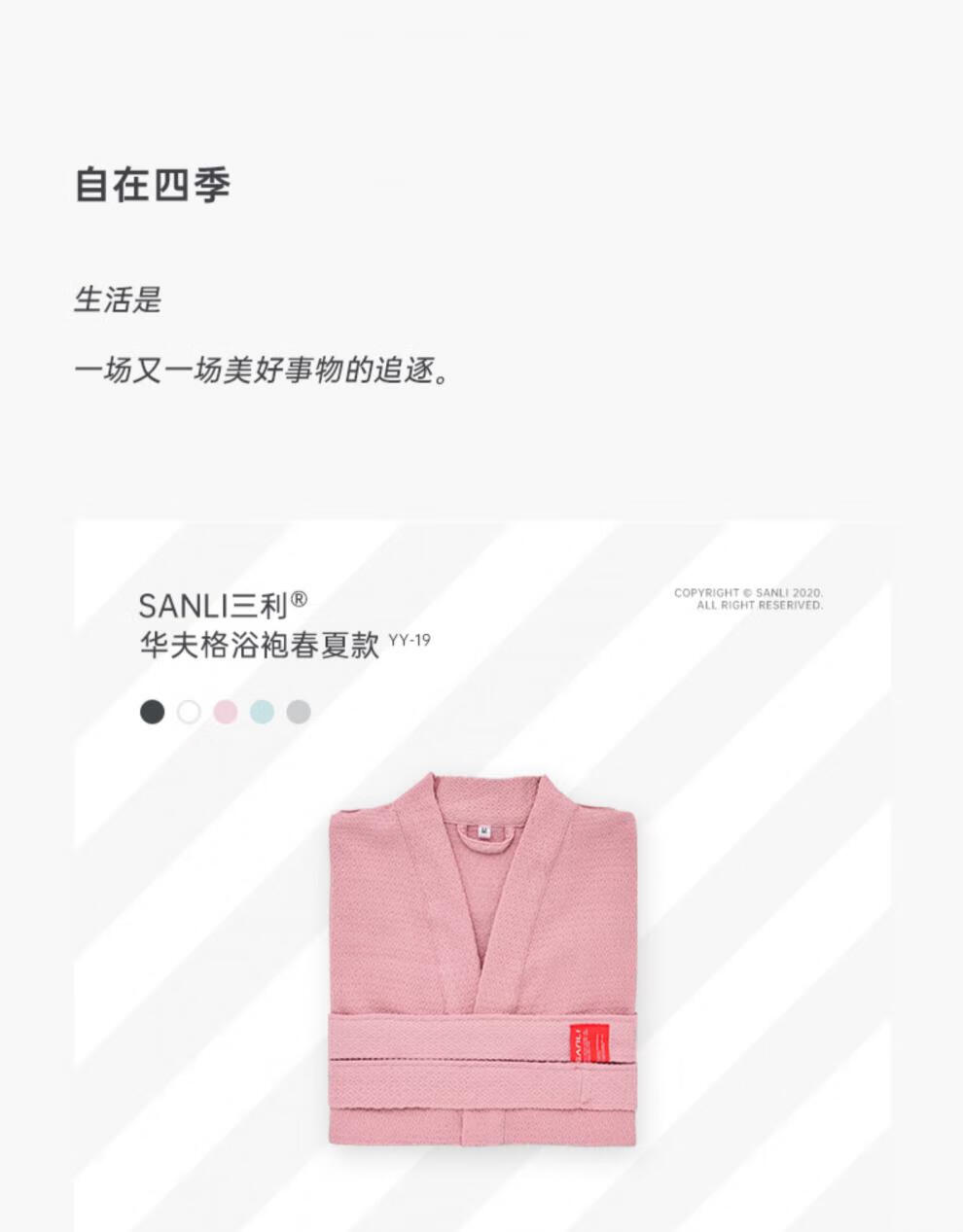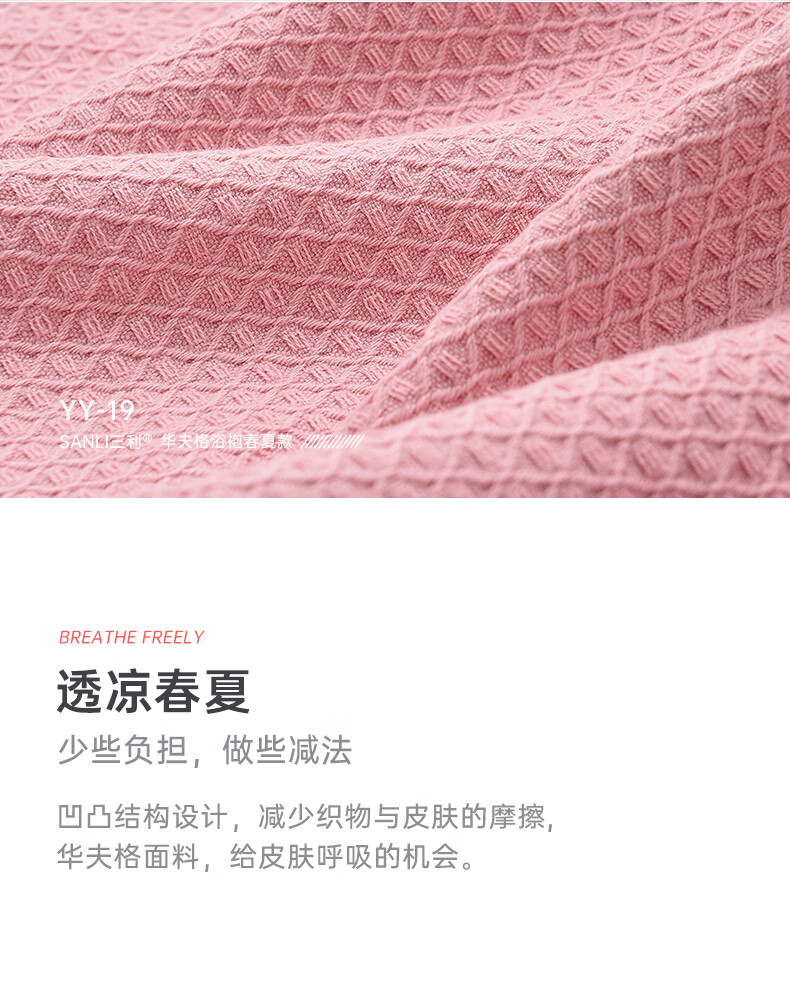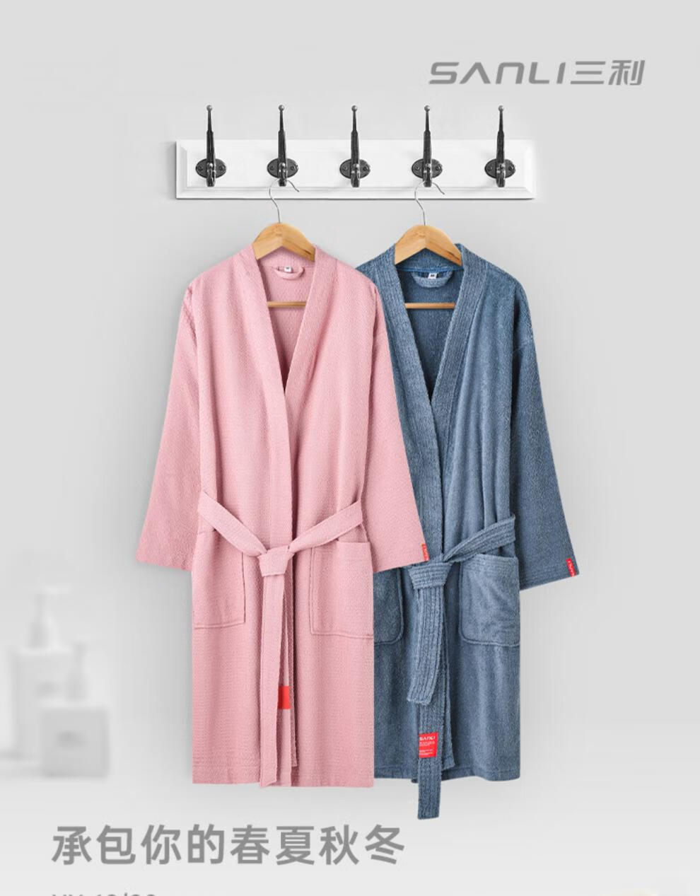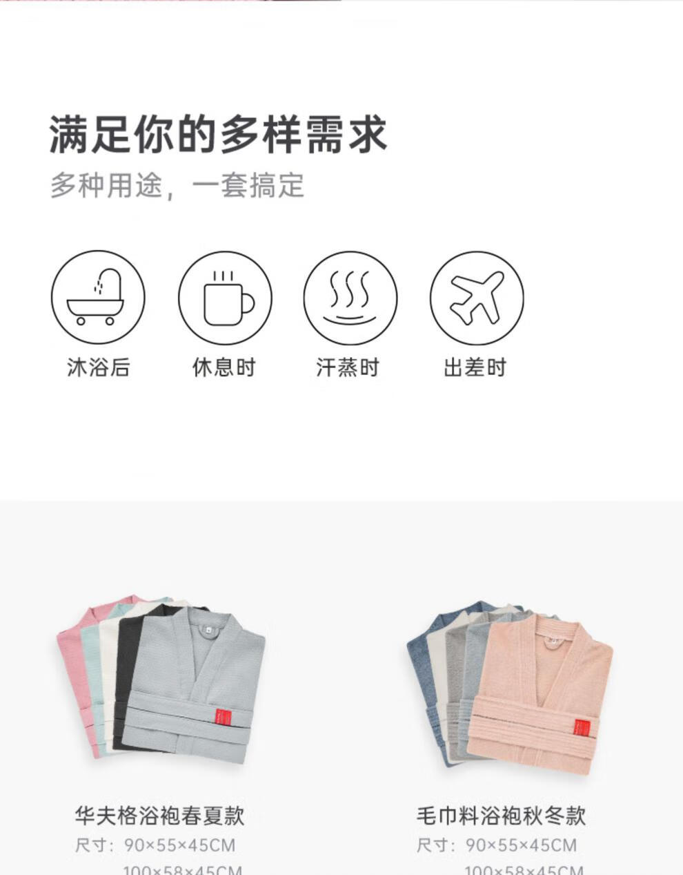 三利毛巾料浴袍女冬厚长款吸水速干纯棉华夫格情侣酒店全棉浴衣男 瑞雪白(华夫格春夏款) S(适合身高155-165cm) 自营