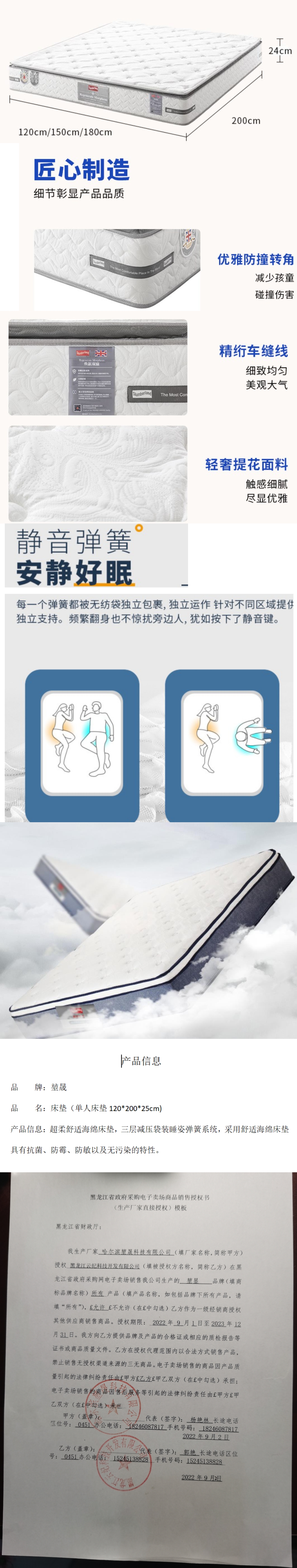 床垫(规格尺寸 120*200*24cm) 自营