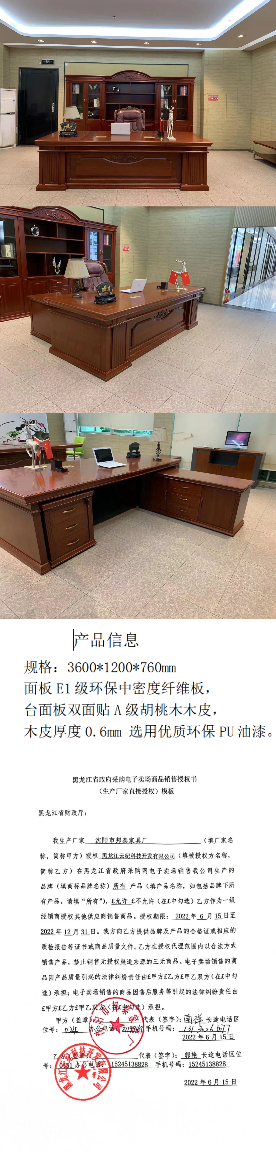 办公桌(型号2003# 规格规格:3600*1200*760mm) 自营