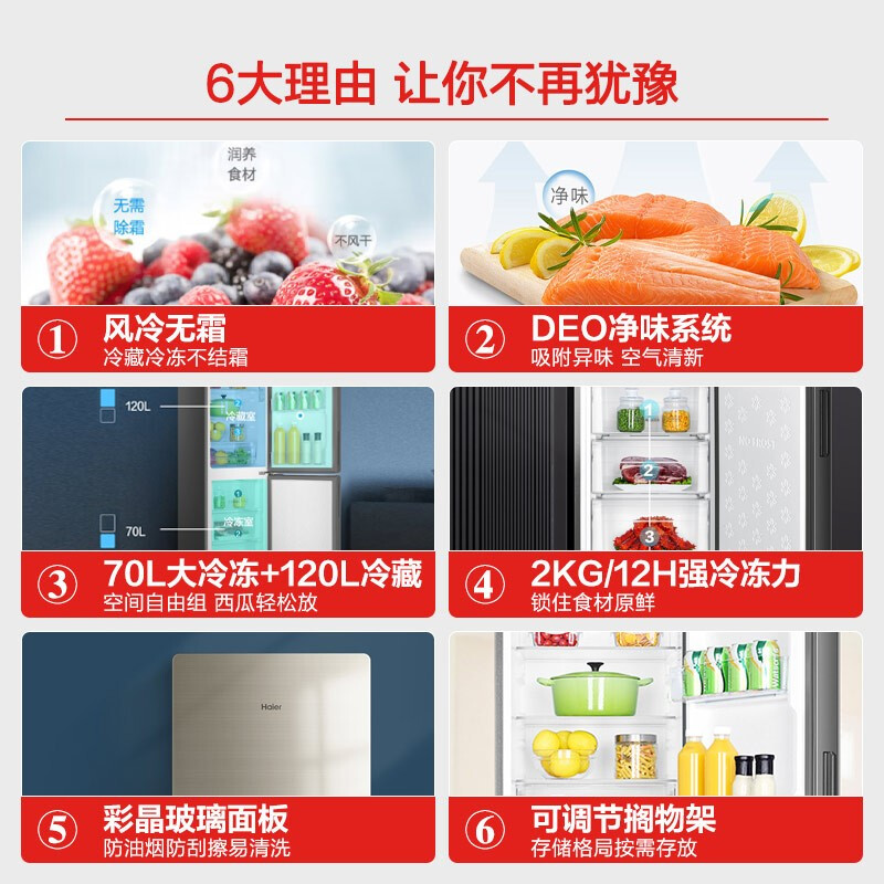 海尔(Haier)190升风冷无霜两门冰箱双门小型迷你家用净味彩晶玻璃宿舍租房小型冰箱BCD-190WDCO 自营