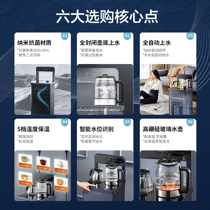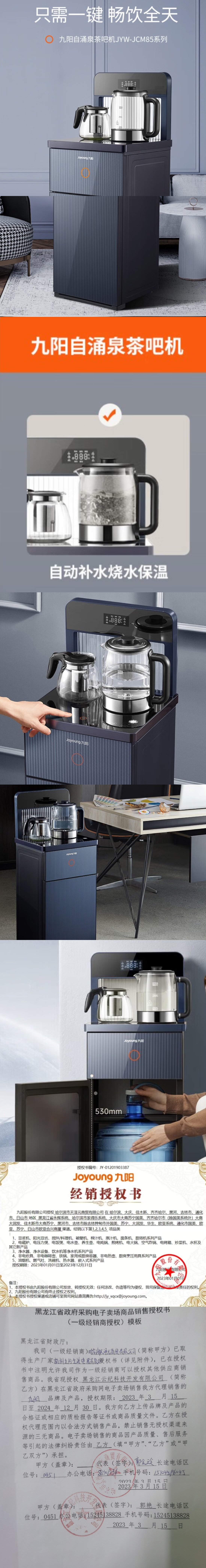 九阳(Joyoung)【智能防溢款】 九阳茶吧机 家用多功能智能遥控冷热型台式立式饮水机下置式水桶全自动饮水机 JCM85【高端温热款】 自营