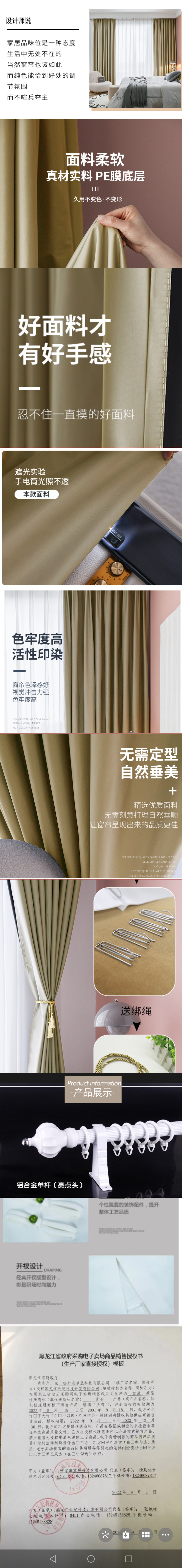 布艺窗帘 帘布规格6500*2800mm;罗马杆规格:3700mm 自营