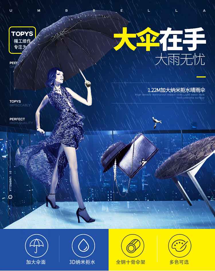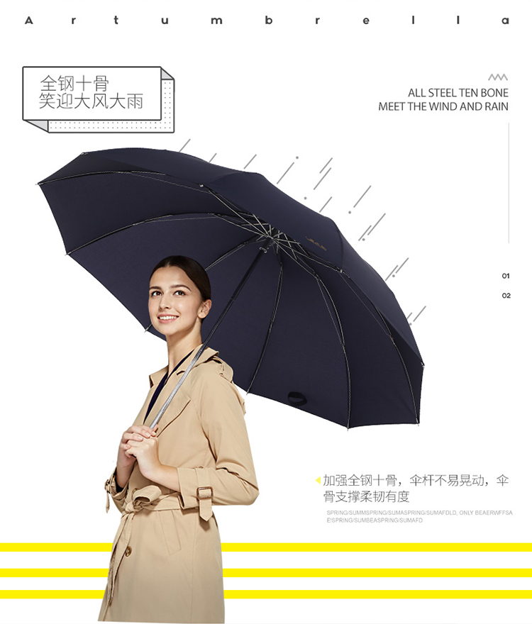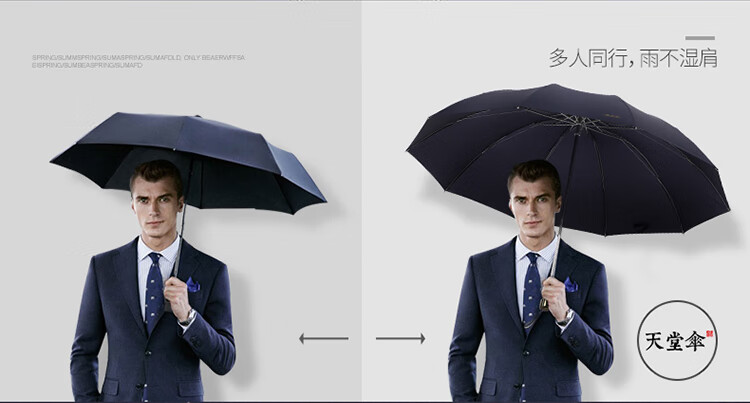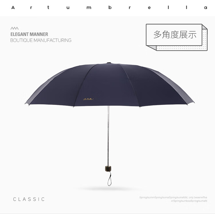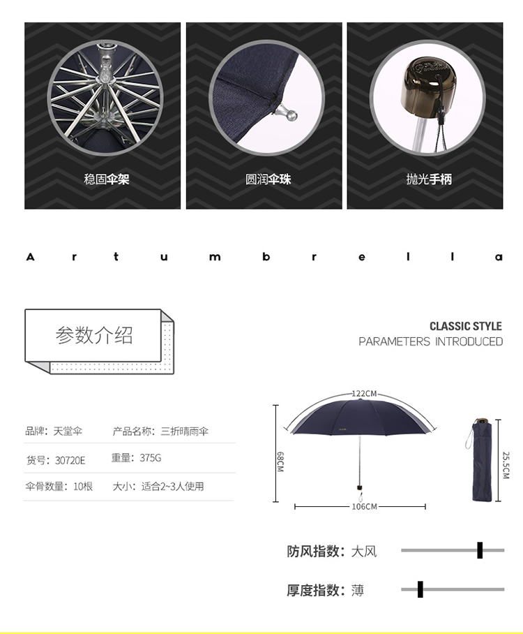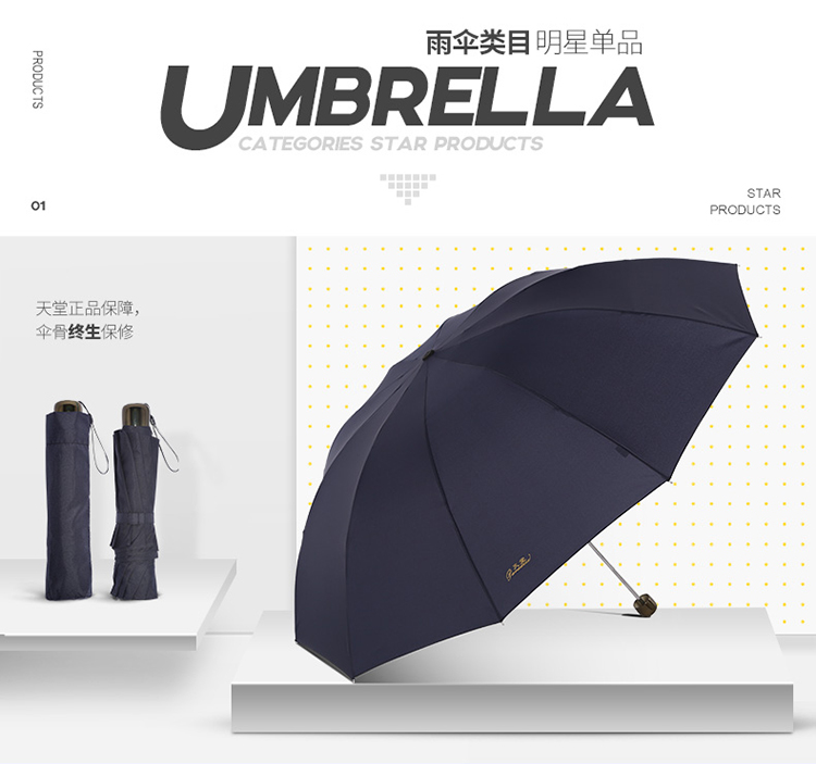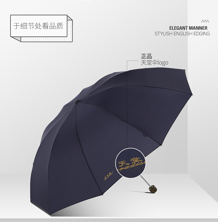 天堂伞旗舰三折伞商务伞雨伞晴雨伞10骨经典简约强效拒水伞男女 5#藏青 自营