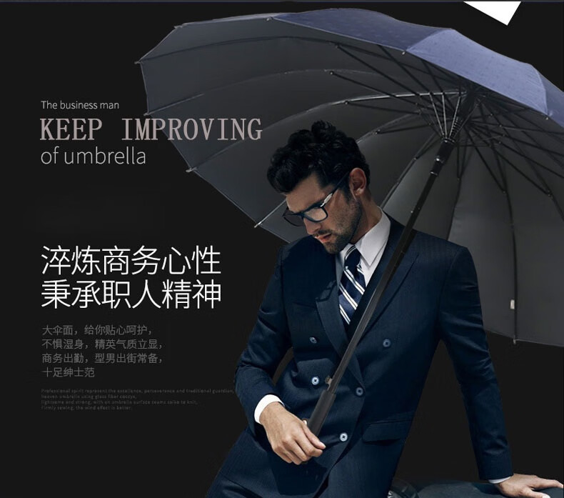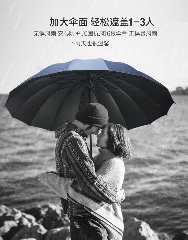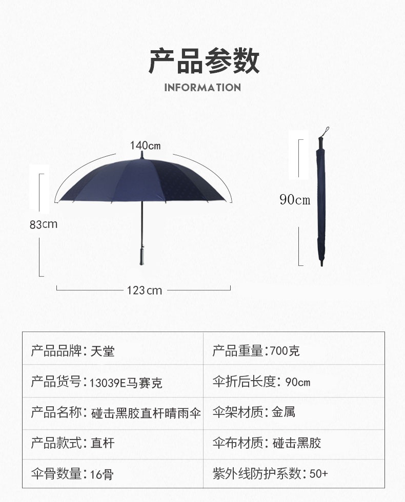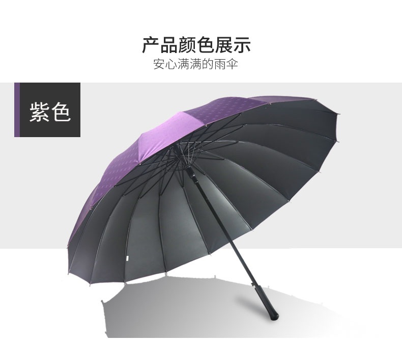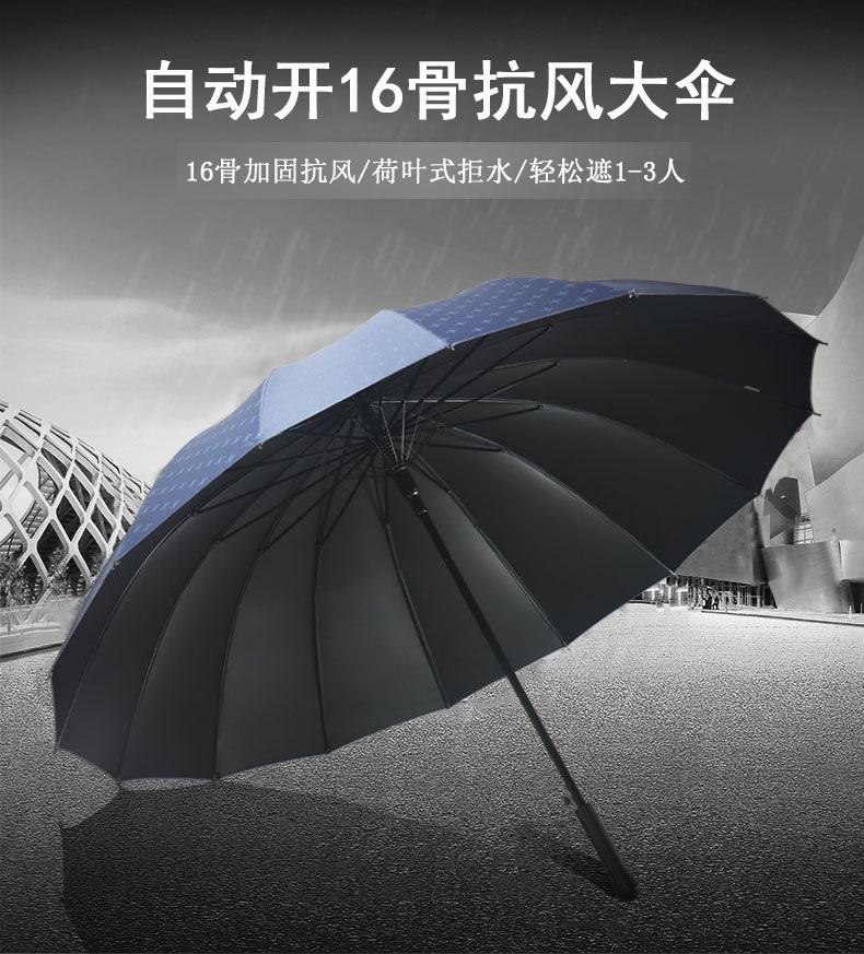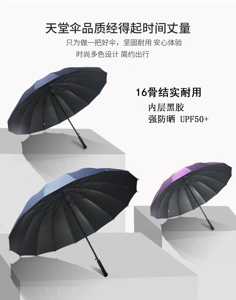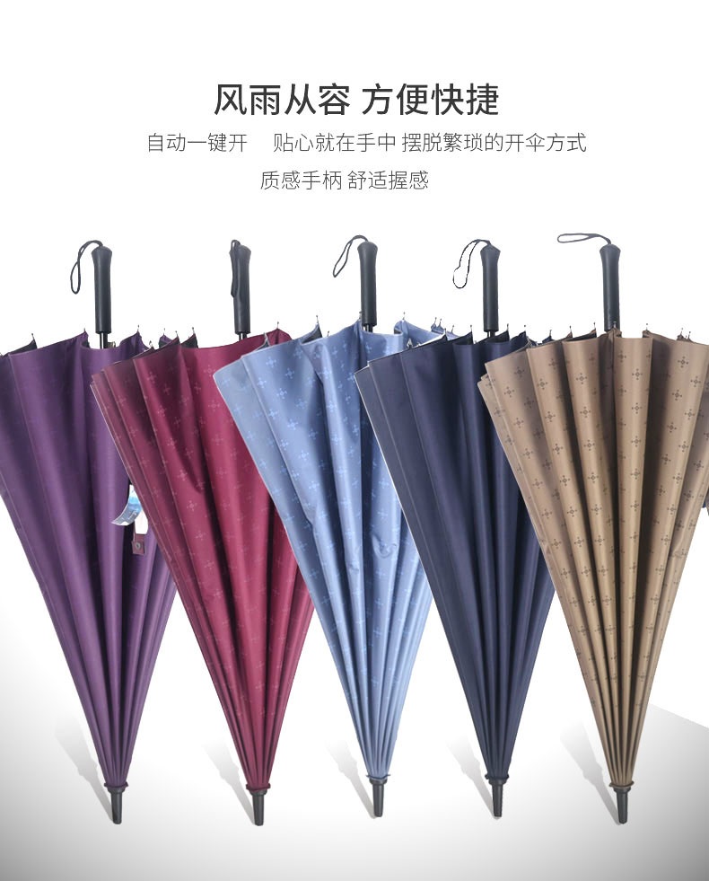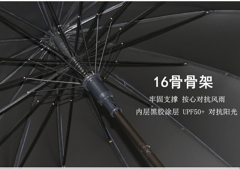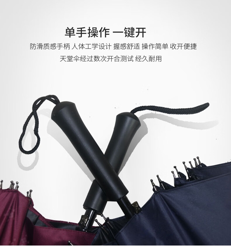 天堂伞16骨直杆伞长柄伞自动男女大码高尔夫晴雨伞男士商务长柄防风雨伞 黑色 自营