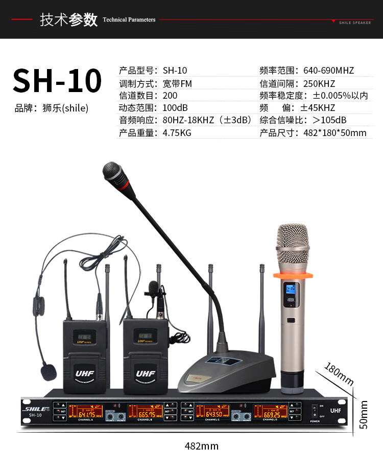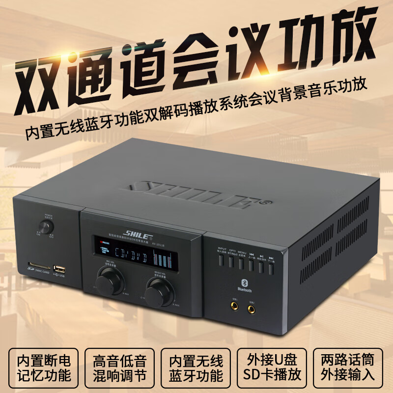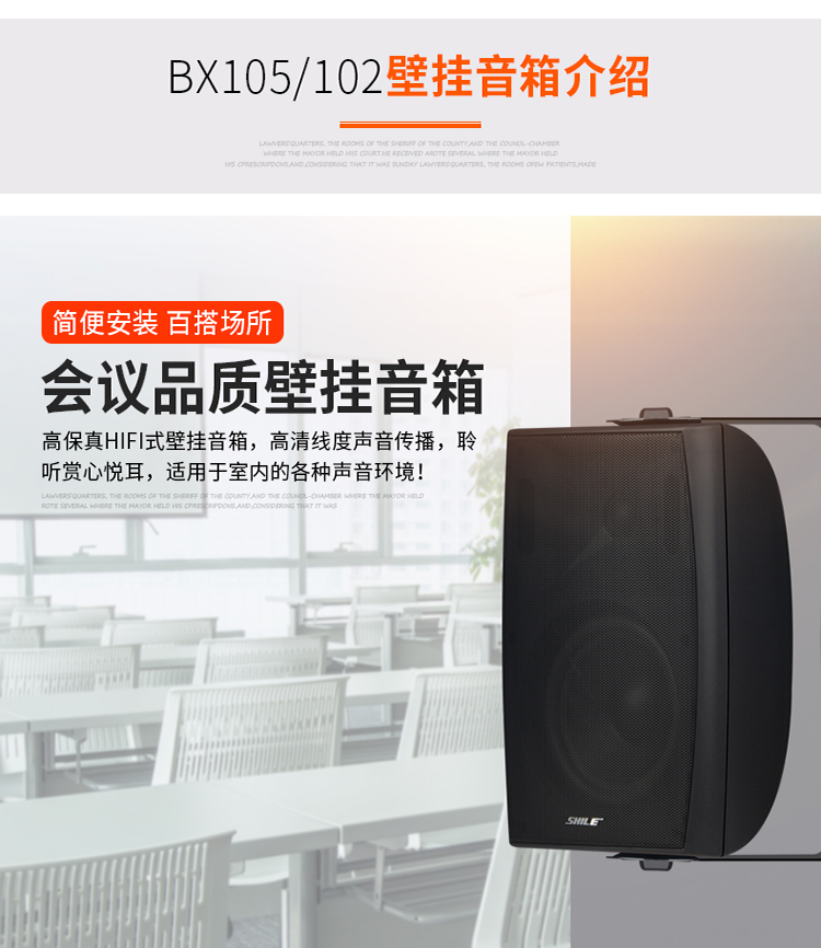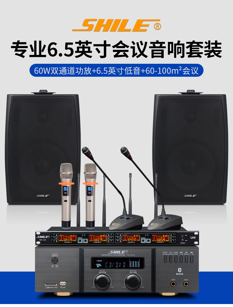 狮乐会议室音响组合套装 背景音乐培训音响教学系统 无线蓝牙功放壁挂音响组合 2011B+105*2+SH-10 自营