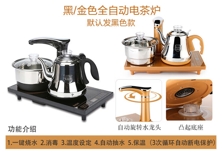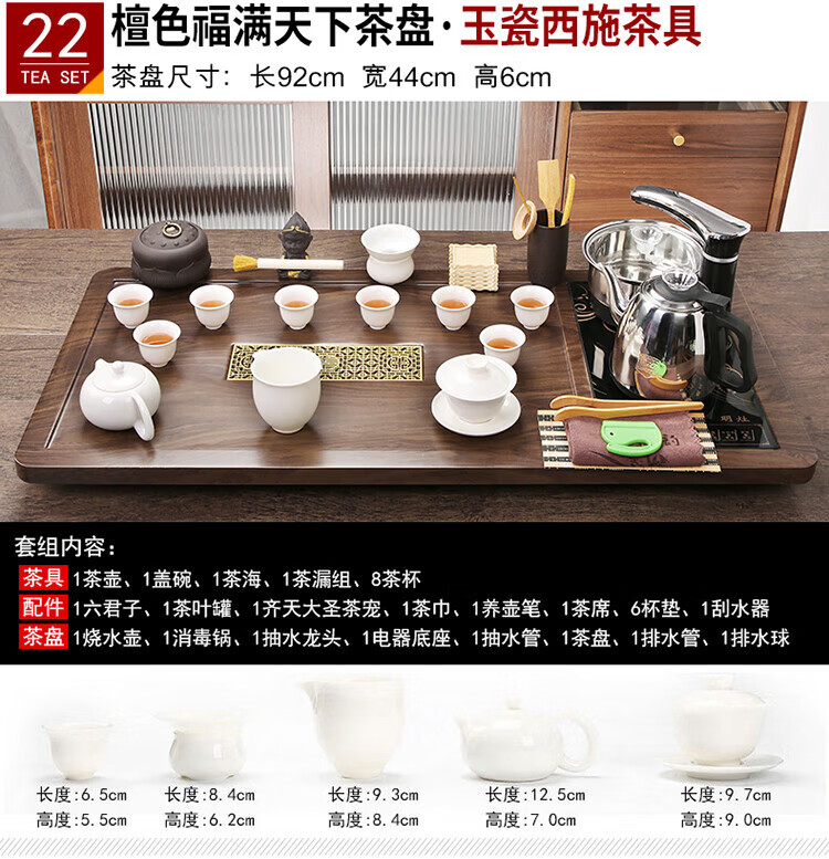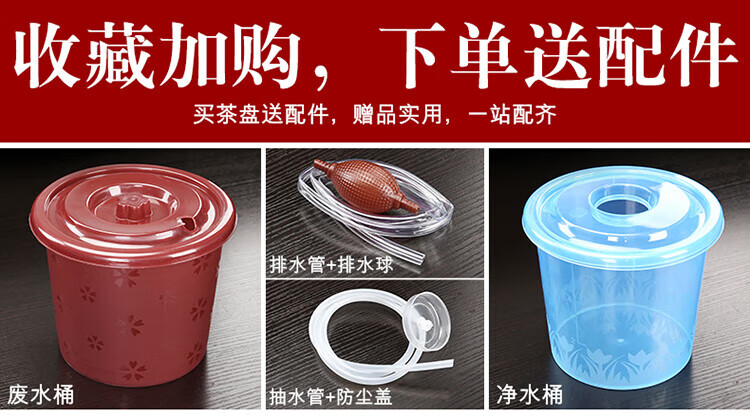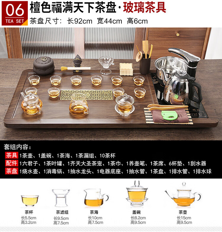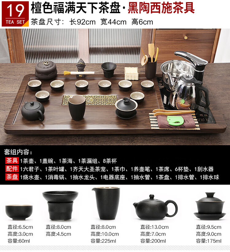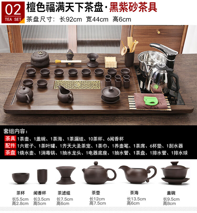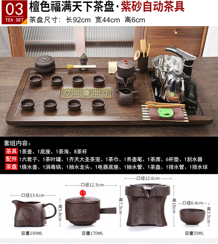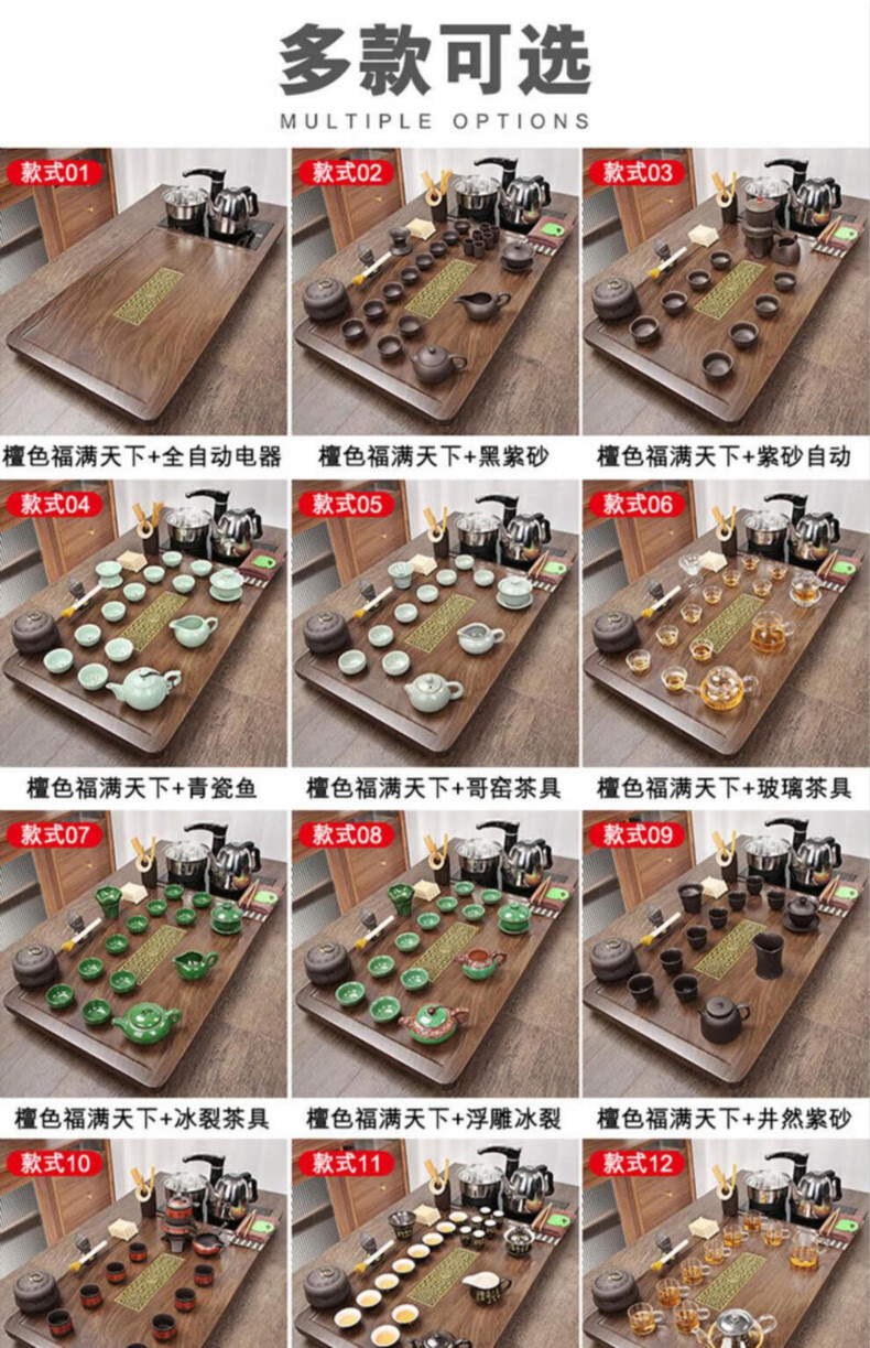 青经全自动茶盘茶具套装烧水壶一体泡茶台家用办公室大茶海整套茶具 07檀色福满天下茶盘+冰裂茶具+黑 自营