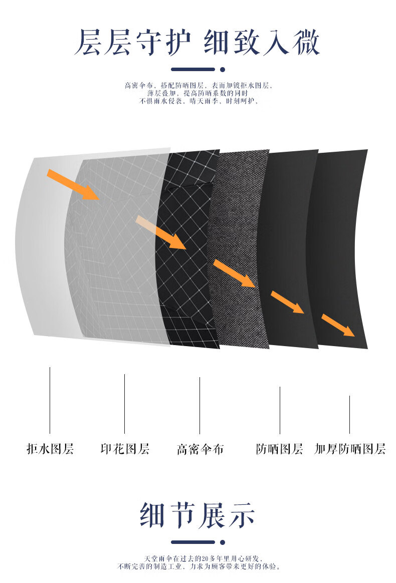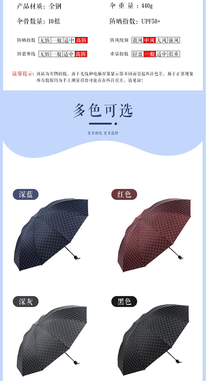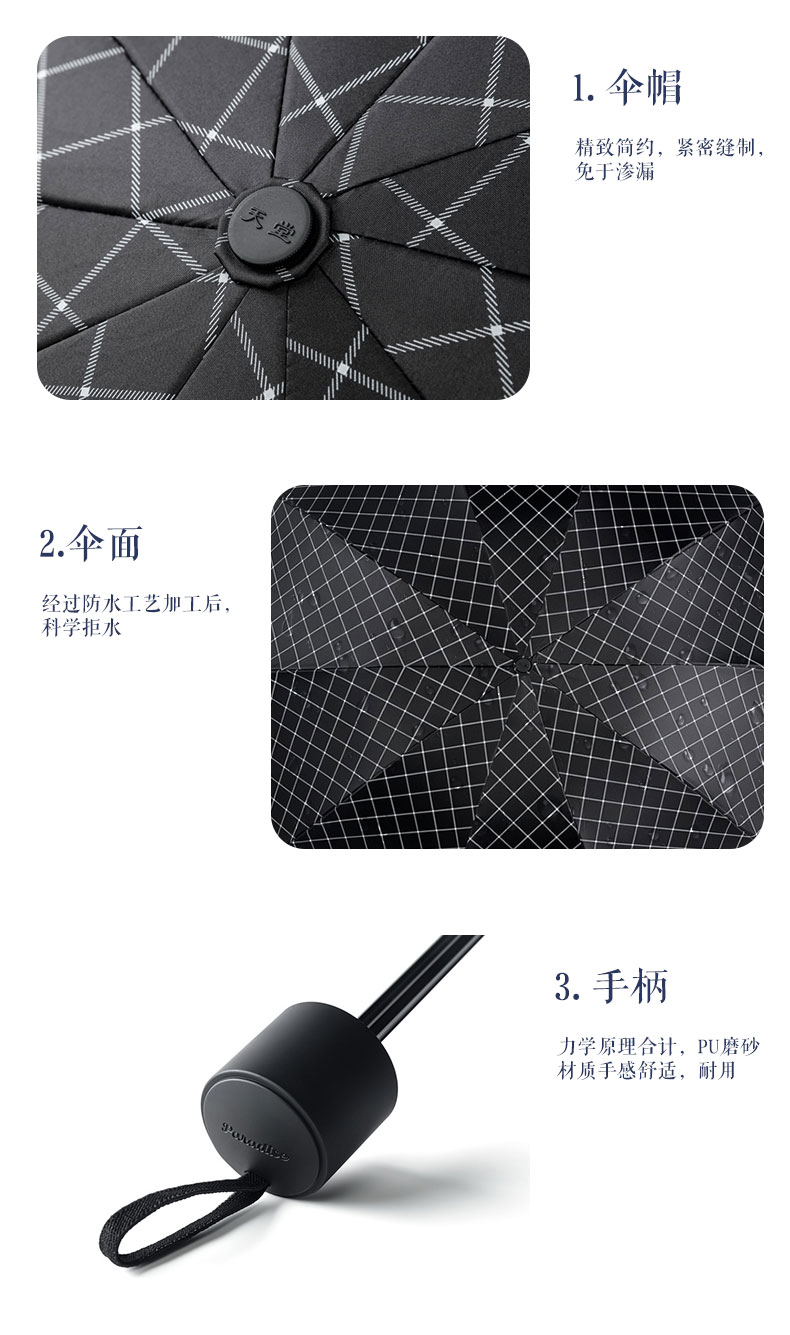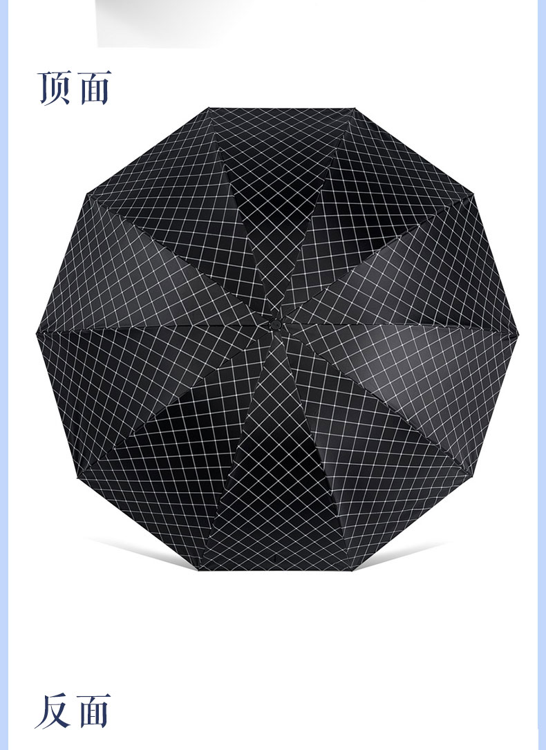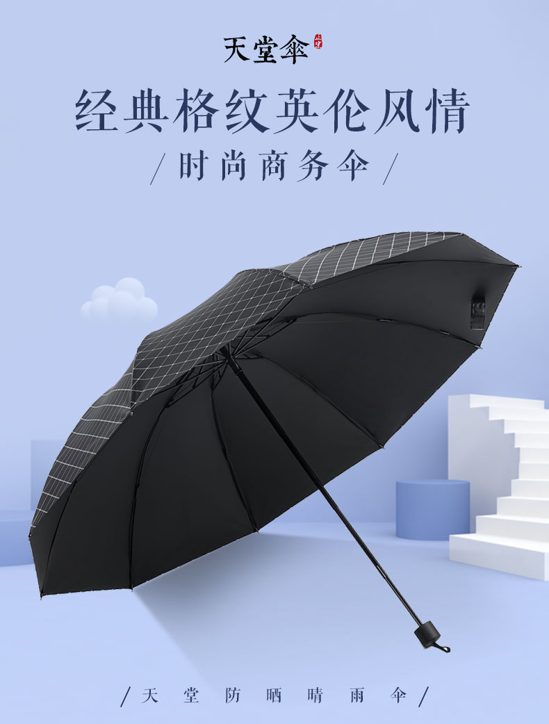 天堂伞十骨加大加固黑胶防晒防紫外线晴雨两用伞三折伞防风遮阳伞男士女士格子伞商务伞2-3人使用 菱致黑格【黑色】 64cmX10骨 自营