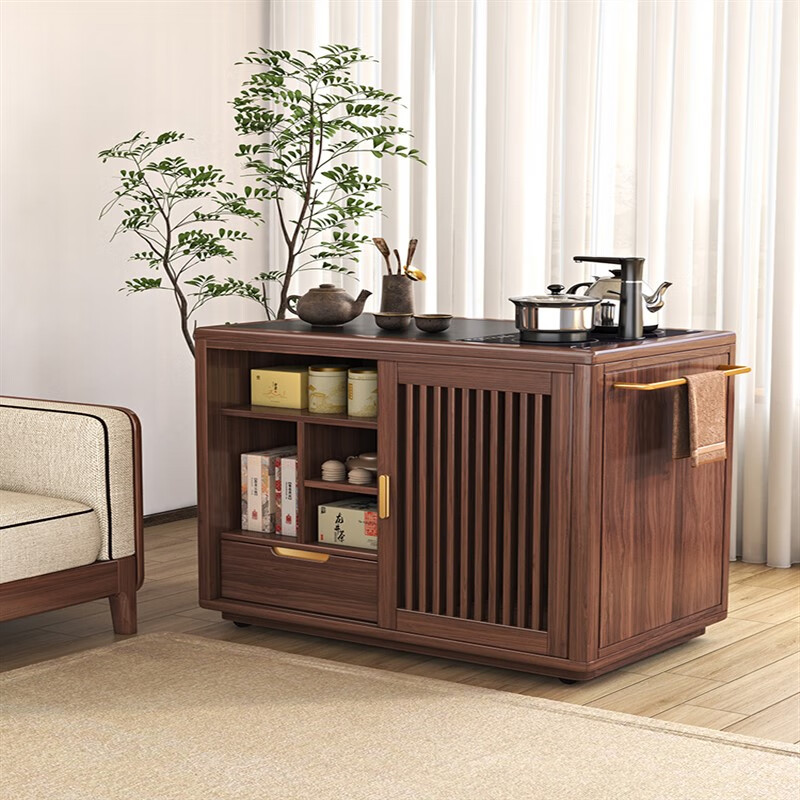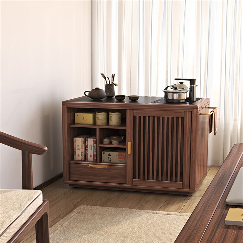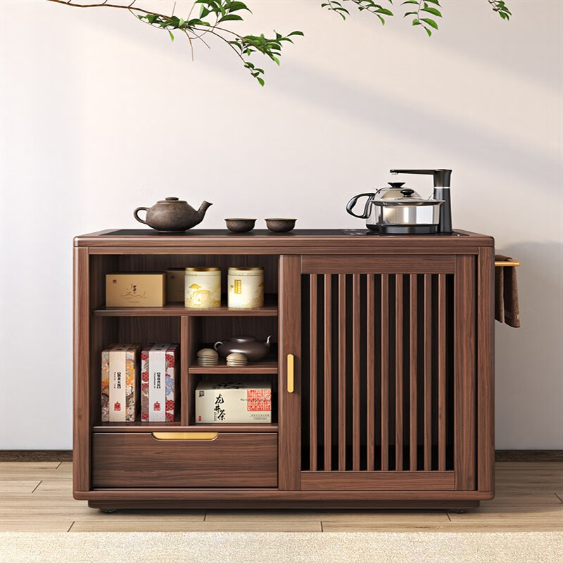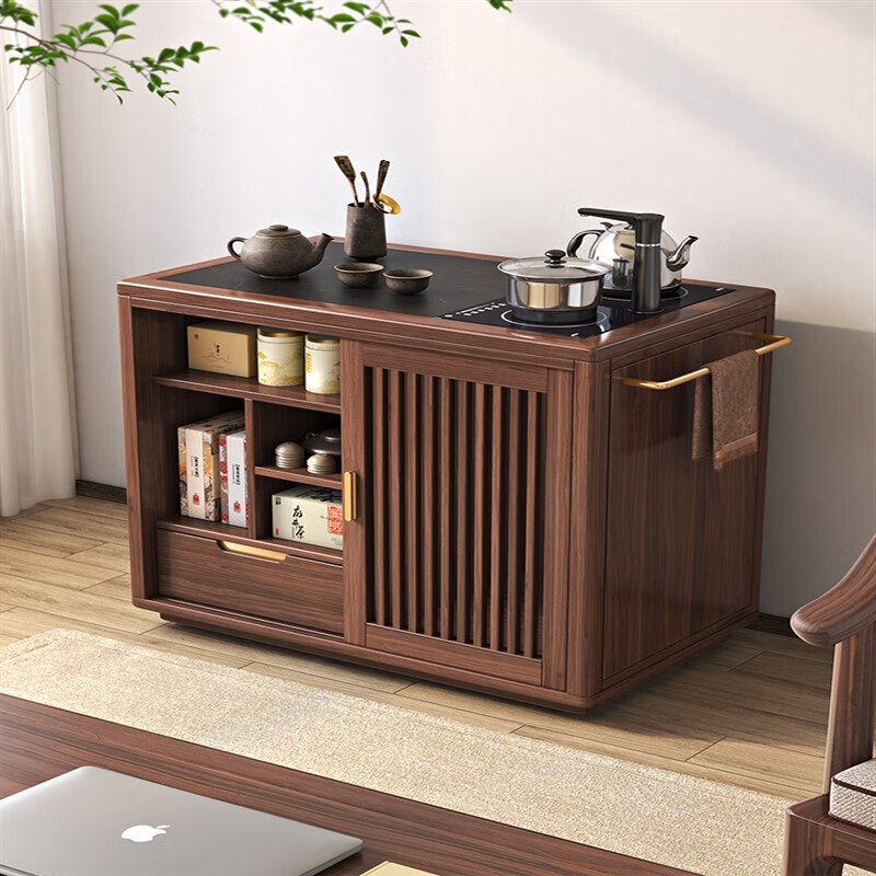 移动茶台烧水壶一体移动茶水柜小茶桌家用实木茶台茶水柜+防烫全自动电器 自营