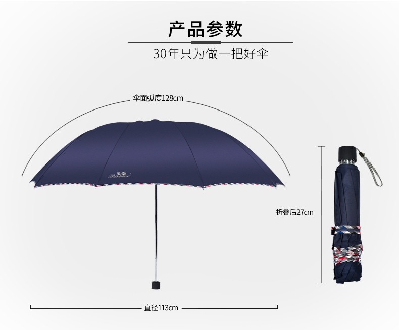 天堂伞 晴雨伞加大加固防晒晴雨两用经典商务遮阳伞强效拒水女 藏青 64cm*10骨
