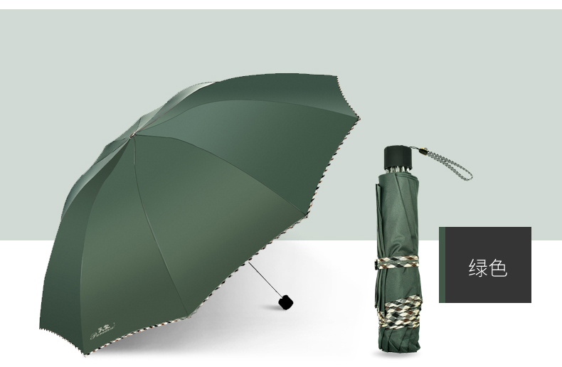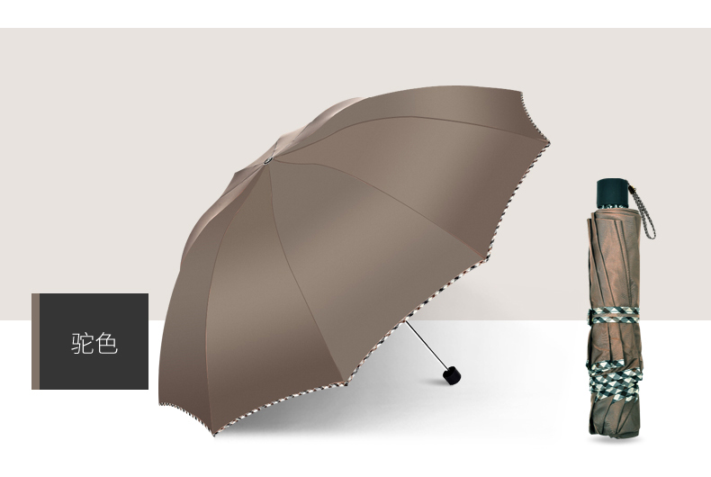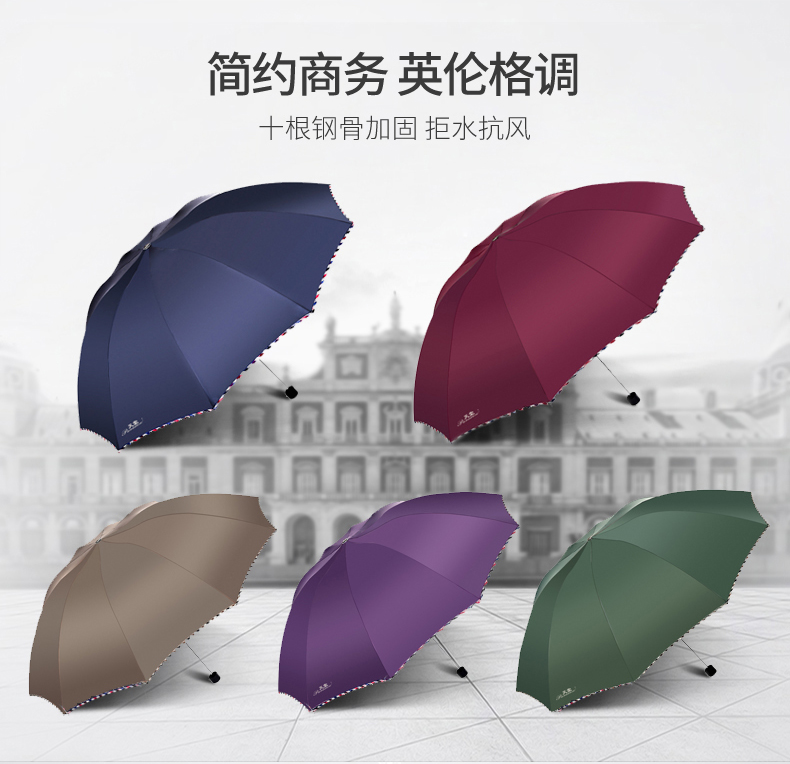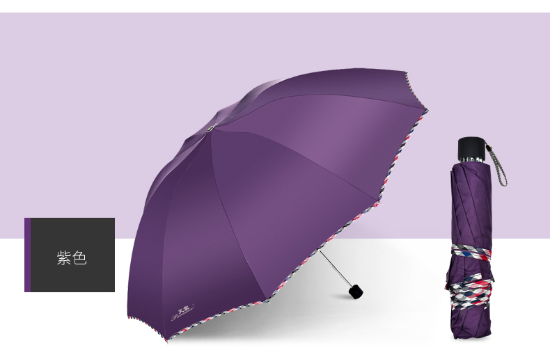 天堂伞 55cmX10骨抗风三折晴雨伞黑胶防晒伞遮阳伞太阳伞男女商务伞 黑紫色