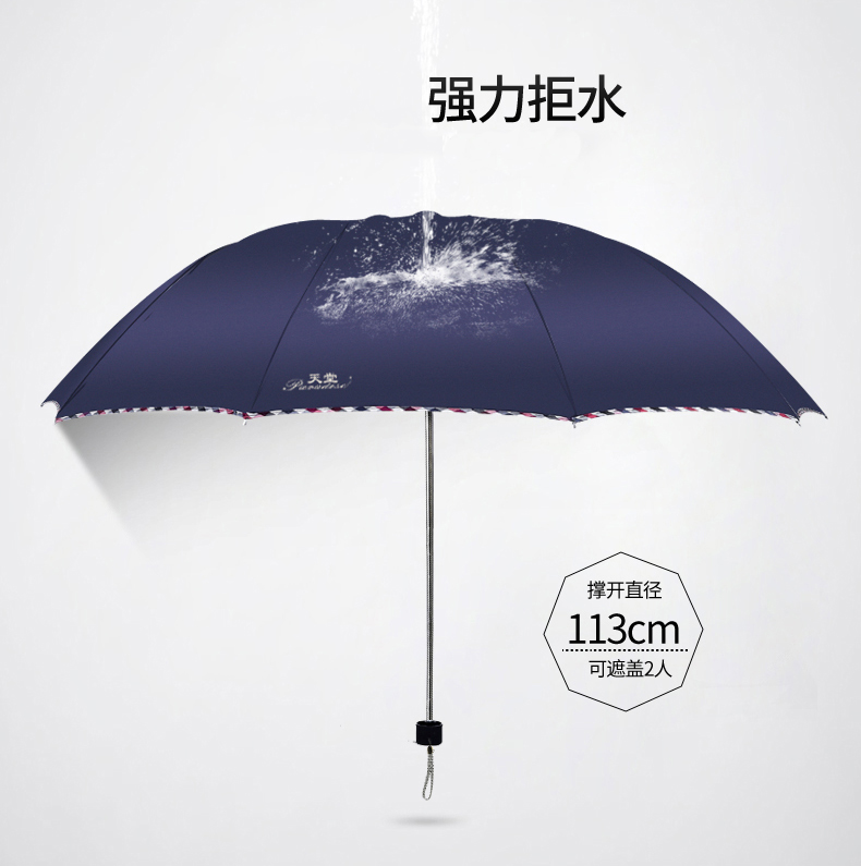 天堂伞十骨加大加固黑胶防晒防紫外线晴雨两用伞三折叠防风遮阳伞男士女士纯色定制广告伞商务伞 藏青防晒双人伞-直径106cm