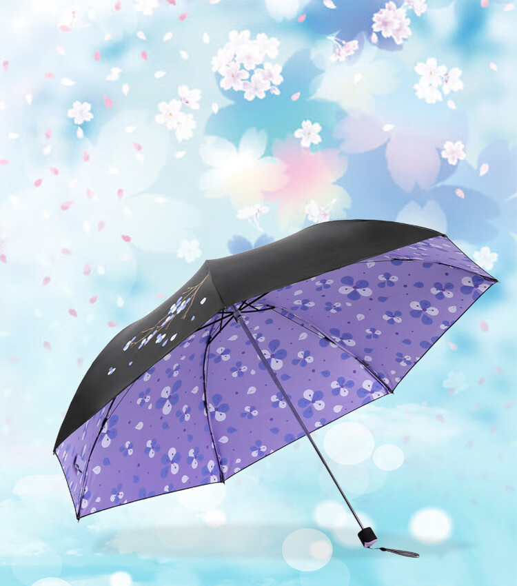 天堂伞 碰击黑胶54cm*7骨三折小黑伞聆听花开33509E紫藤色 自营