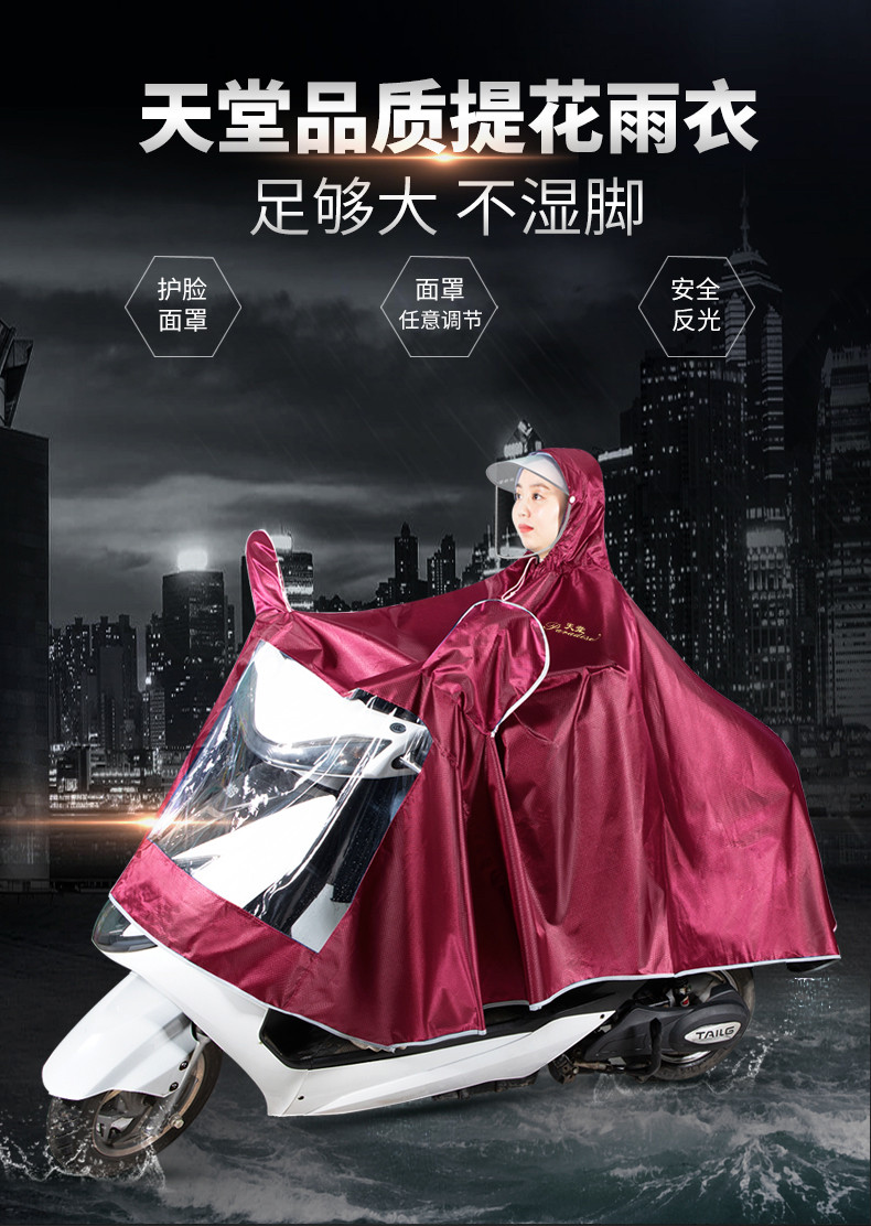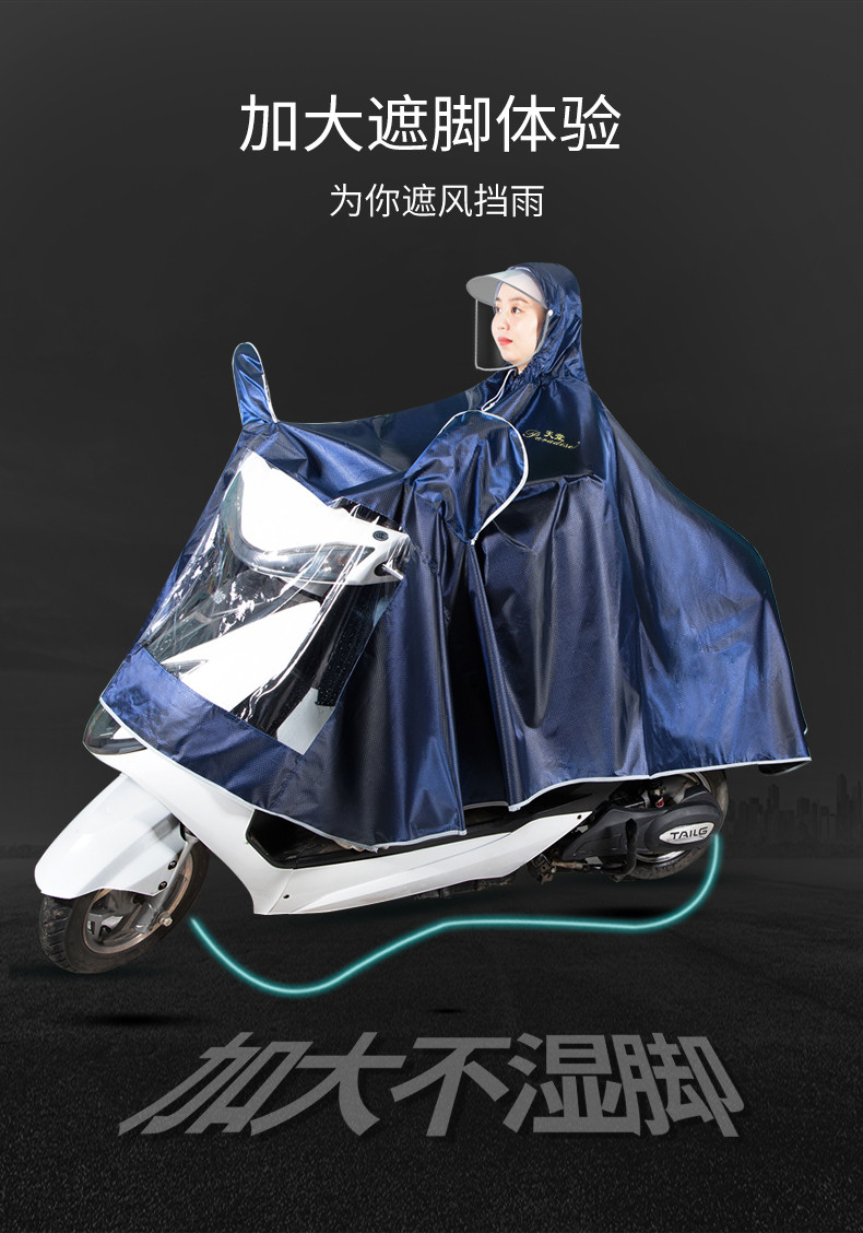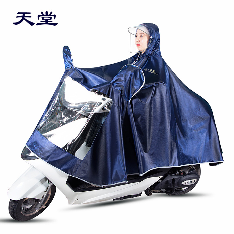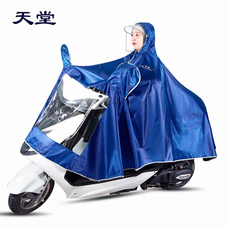 天堂雨衣电动车摩托车电瓶车雨披单人加大加厚加长防水男女骑行防暴雨雨衣 藏青色(加大单人) 自营