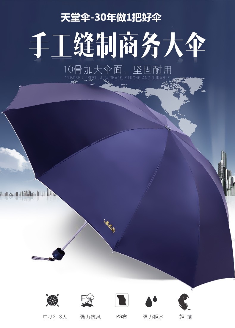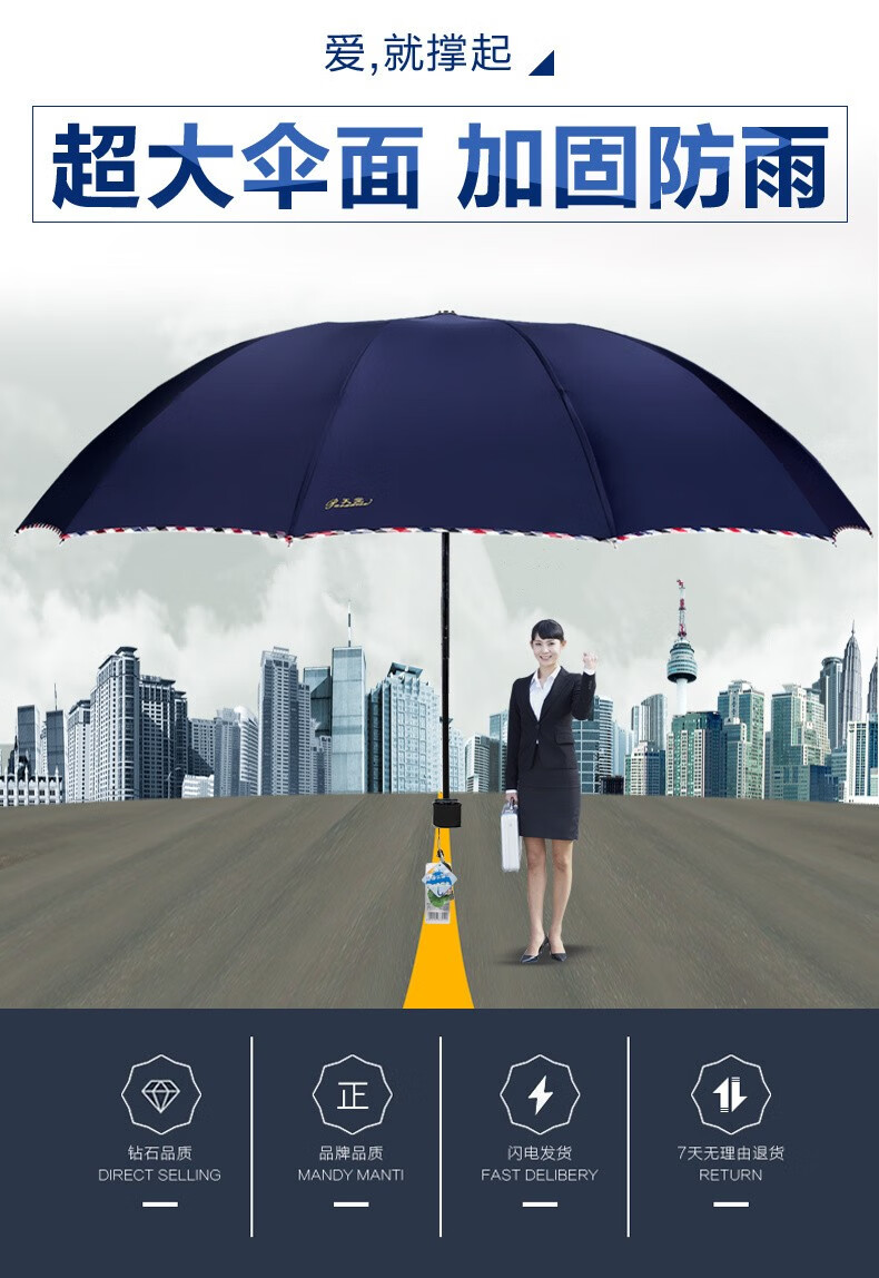 天堂伞大号超大雨伞男女三人双人晴雨两用学生折叠黑胶防晒遮阳伞 岩石蓝(10骨超大伞) 自营