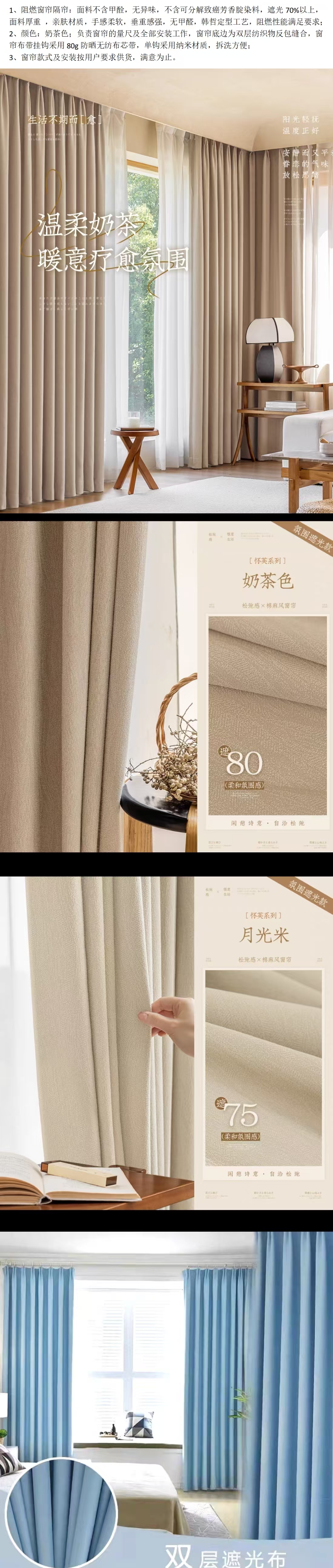 阻燃布艺窗帘 ZW9# 单位:米/幅宽280cm(含安装) 自营