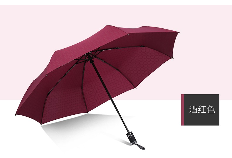 天堂伞 55cmX10骨抗风三折晴雨伞黑胶防晒伞遮阳伞太阳伞男女商务伞 黑紫色