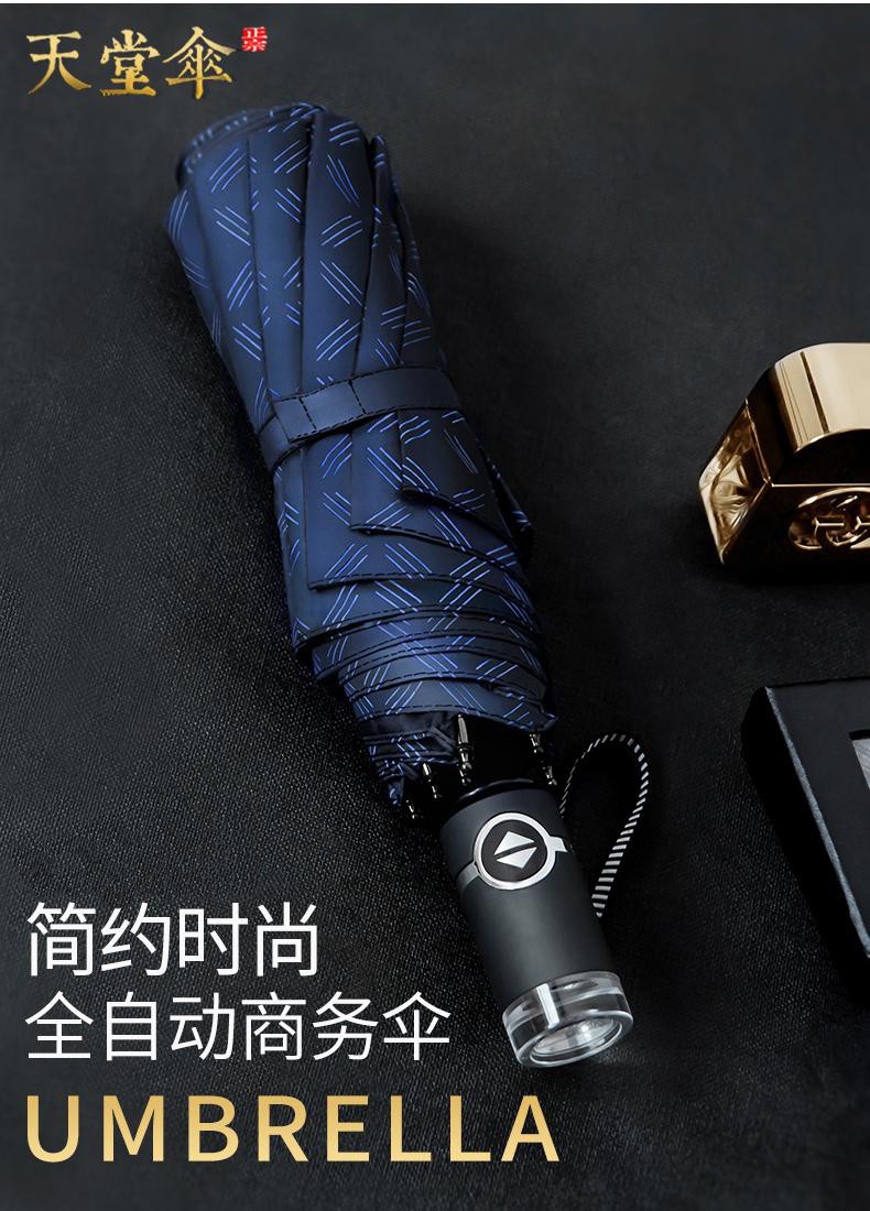 天堂伞 雨伞全自动一键开收简约纯色晴雨两用遮阳防晒男士风 31145领航 深藏青
