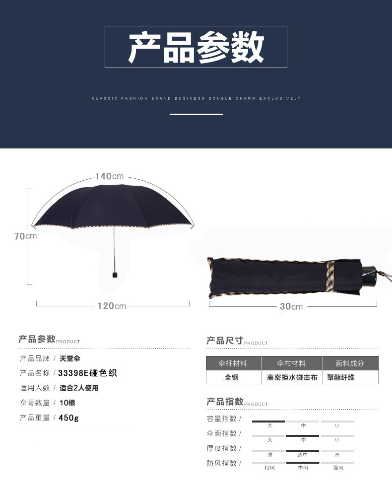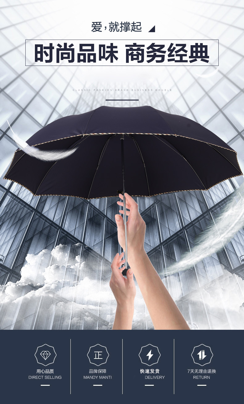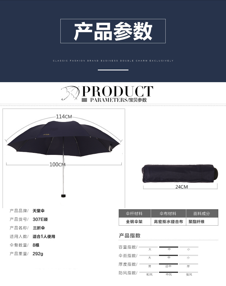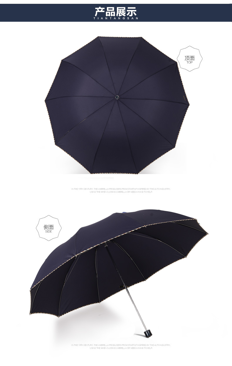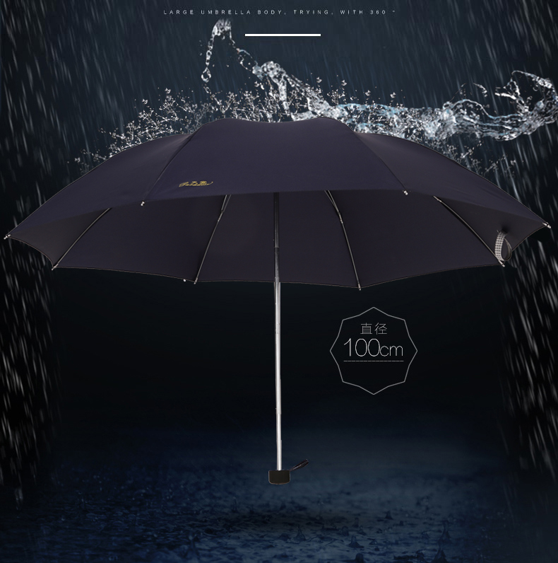 天堂伞商务伞加大加固单双人雨伞晴雨伞男女纯色可订制广告伞三折叠 单人款黑色 自营