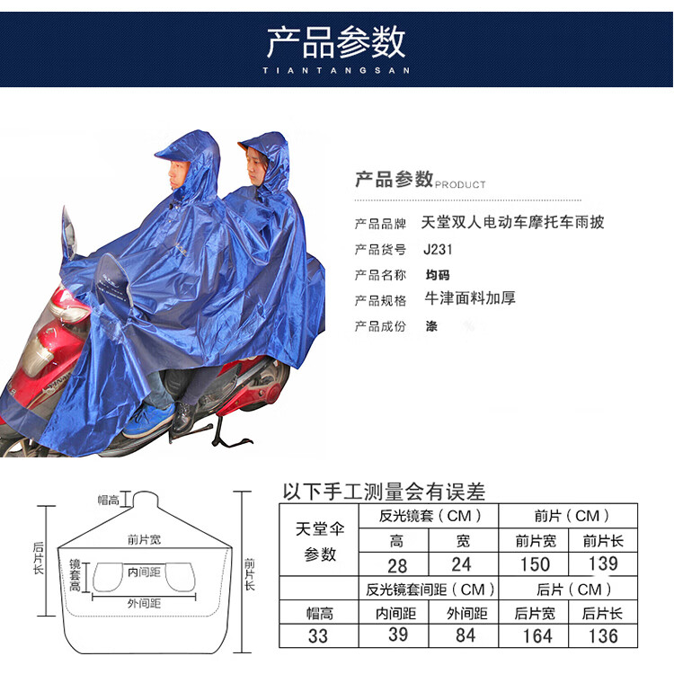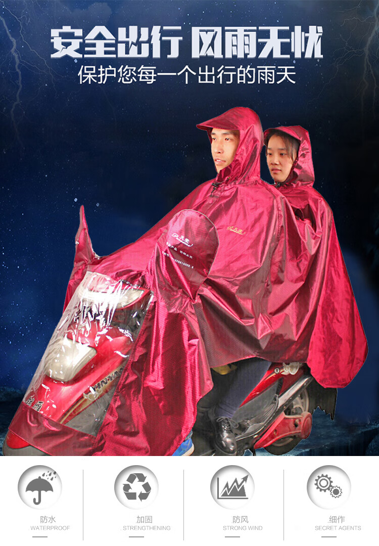 天堂伞 雨衣雨披双人牛津布男女成人款电瓶车电动车摩托车雨披 4#酱红 均码