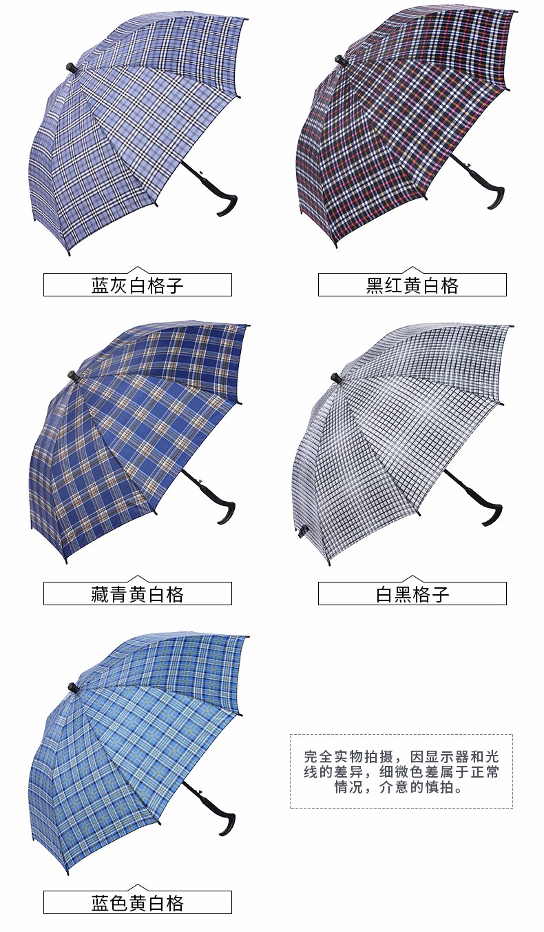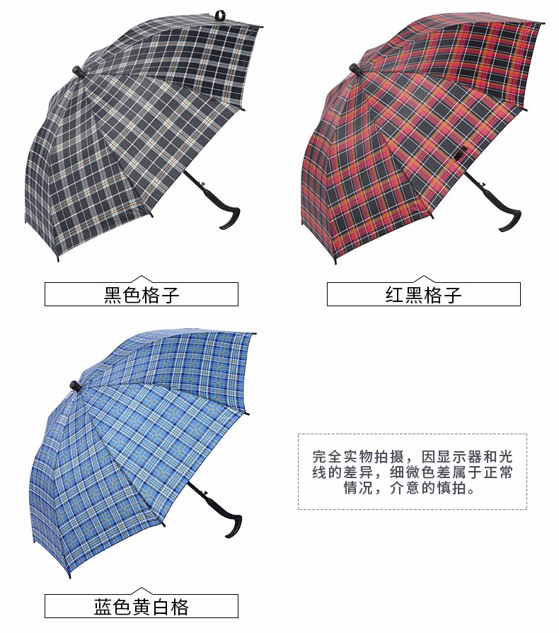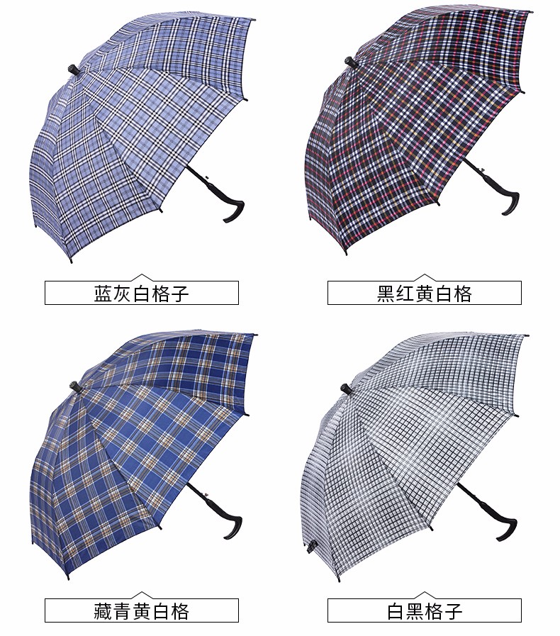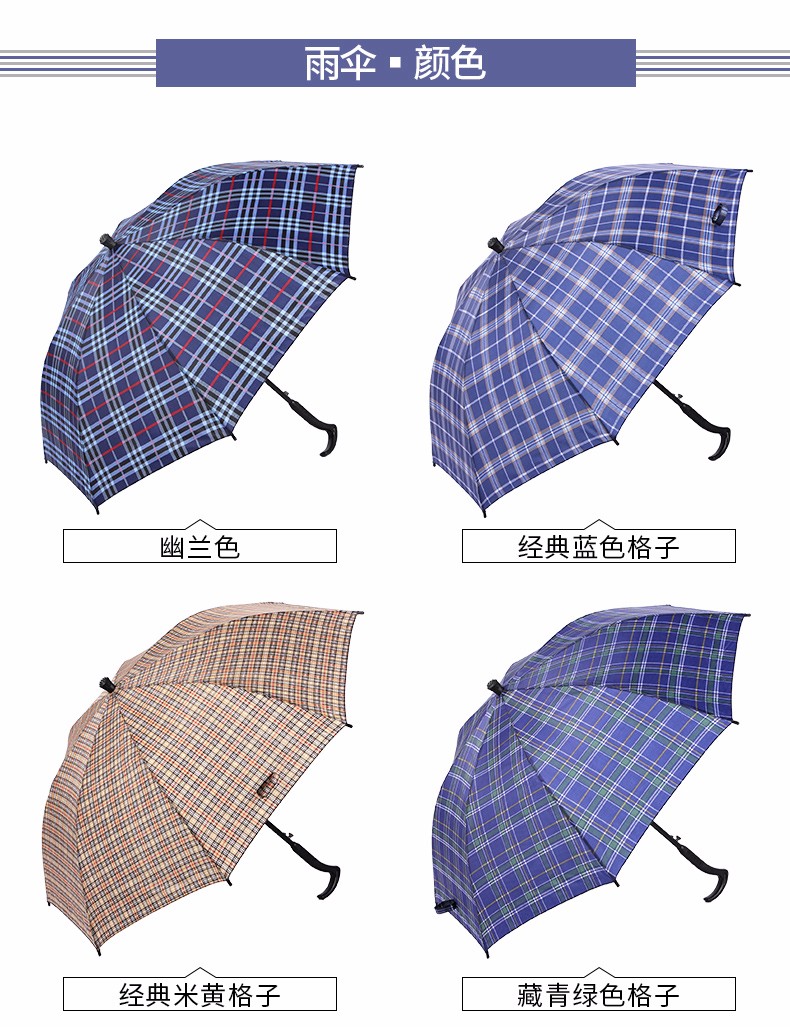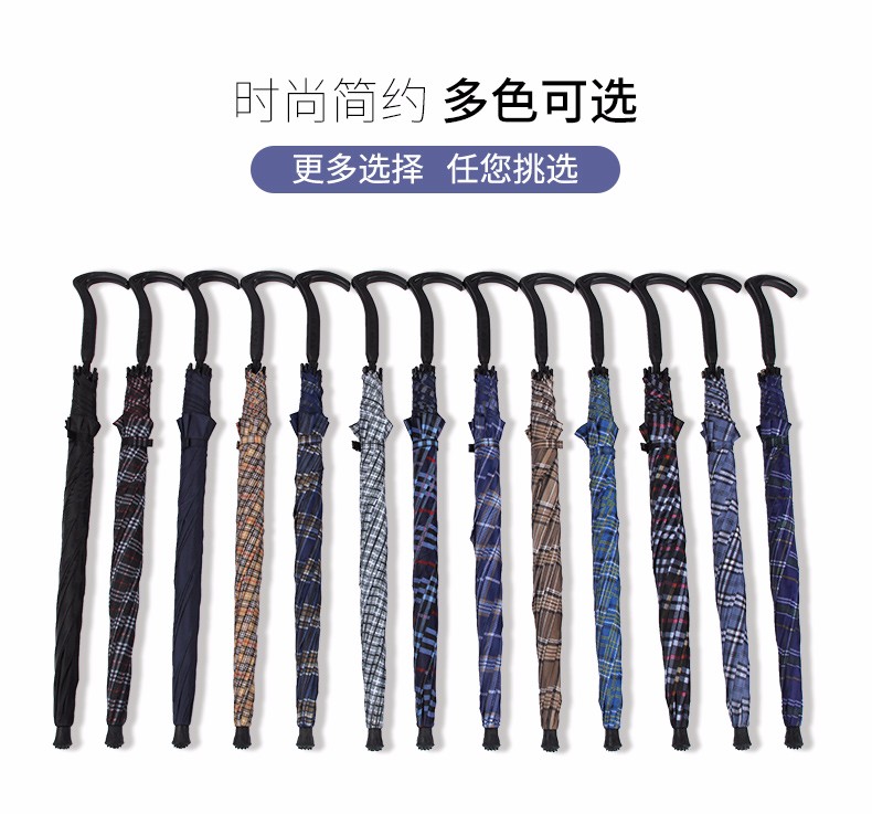 天堂伞格子伞拐杖伞加长防滑雨伞防风登山手杖伞长柄老人晴雨伞 藏青色纯色 自营