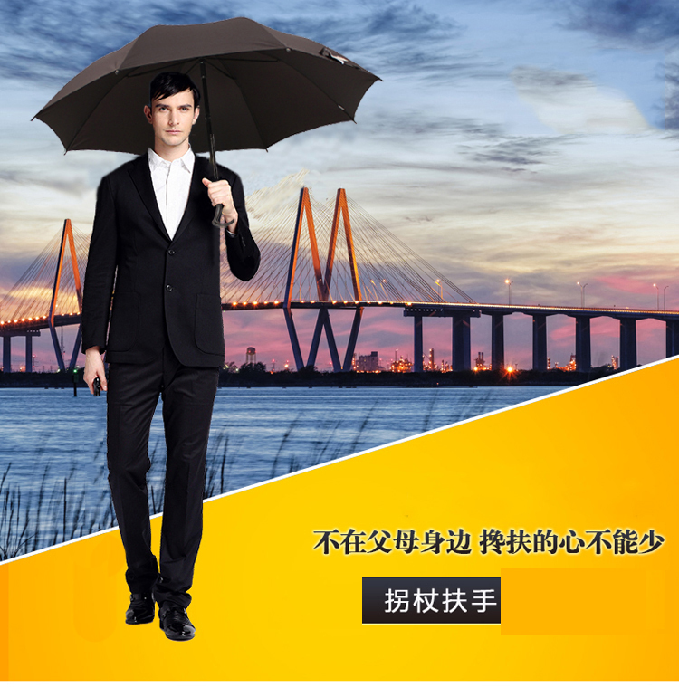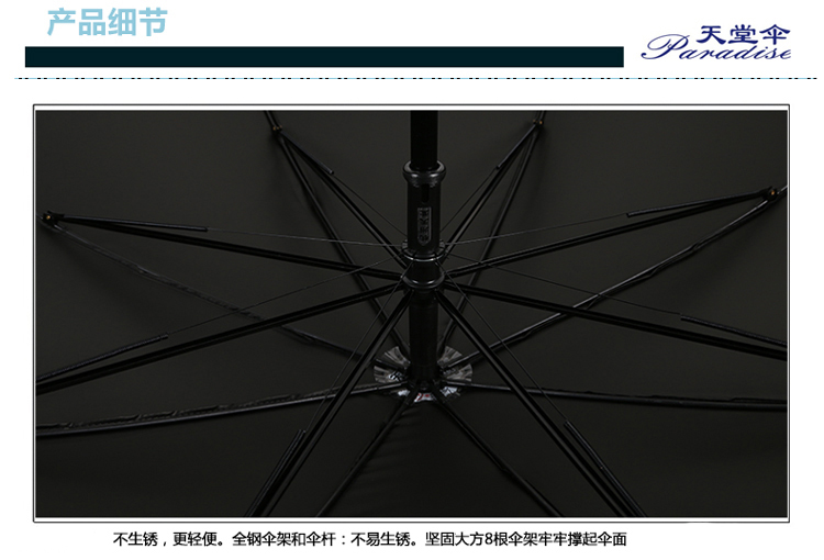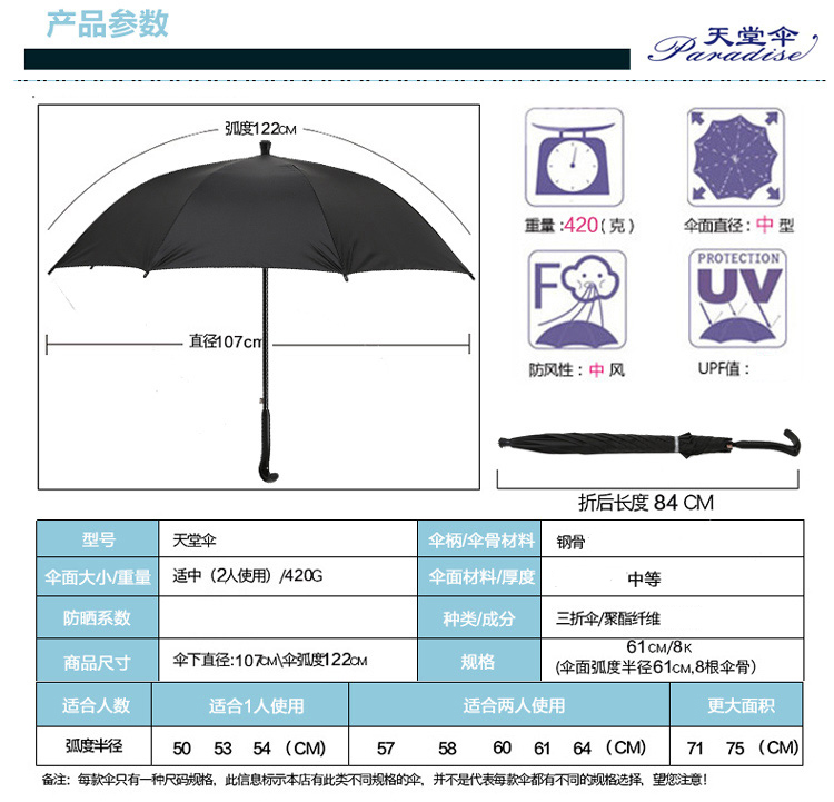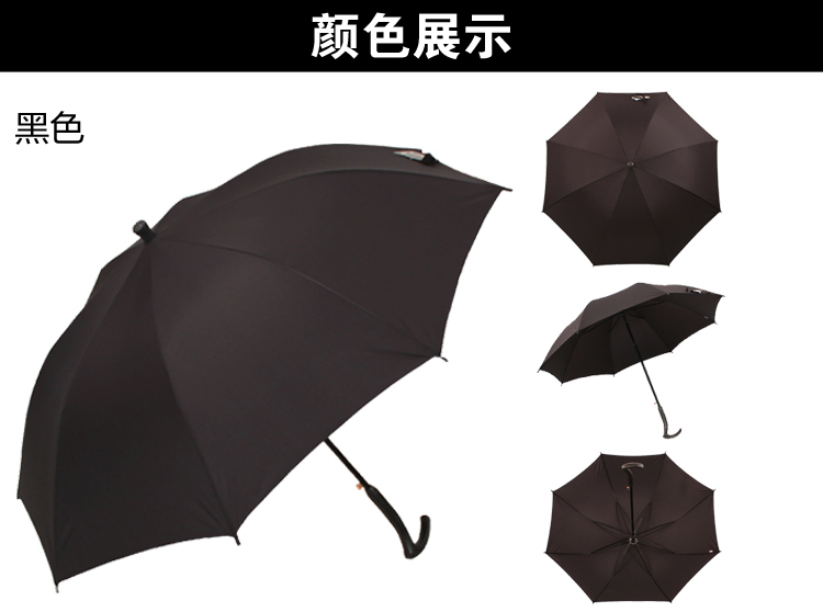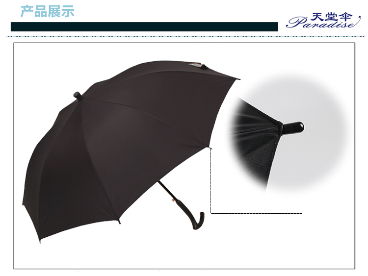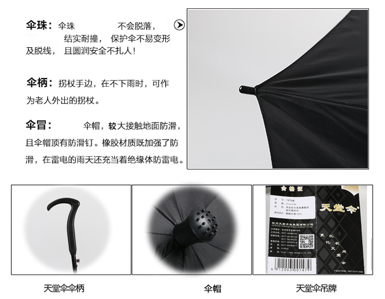 天堂伞老年人拐杖伞弯钩雨伞男女户外防滑直杆伞半自动长柄伞147E 黑色 自营
