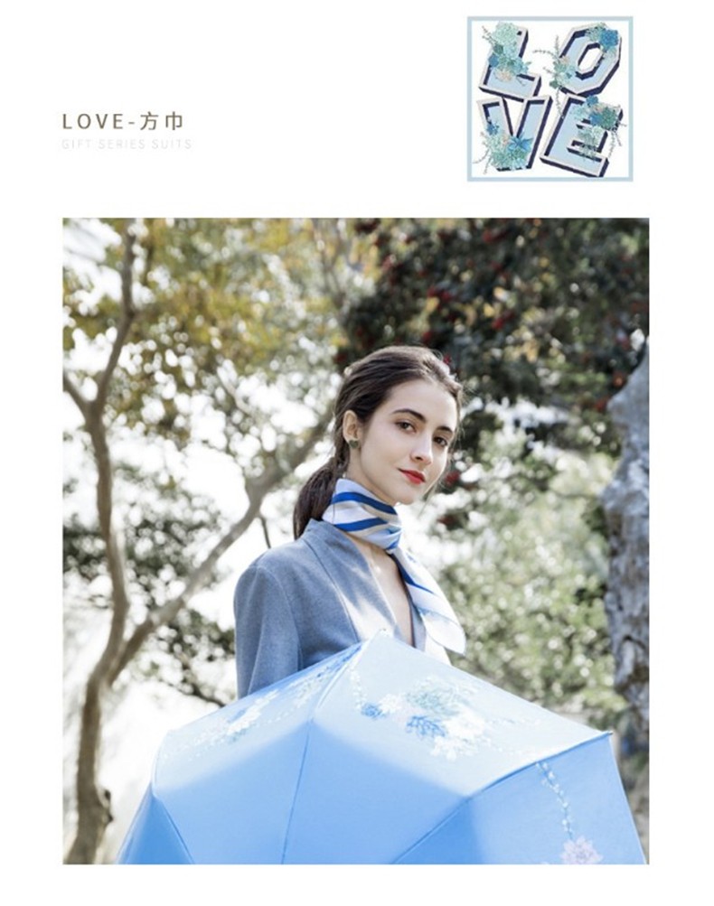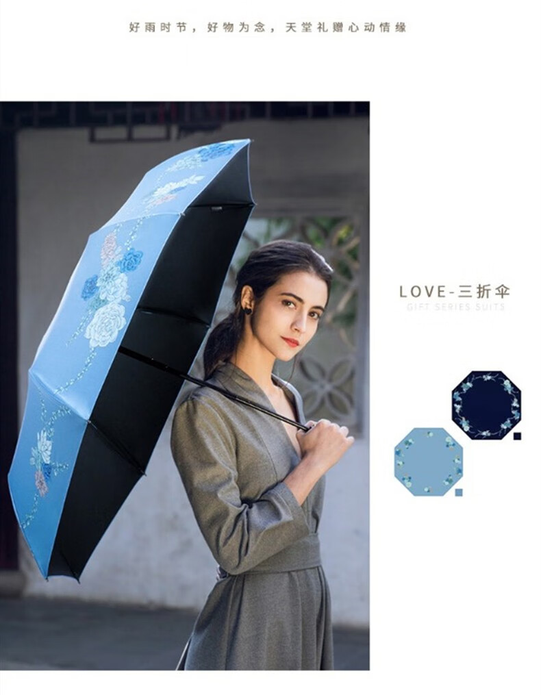 【臻品】天堂伞love真丝礼品套盒黑胶防晒太阳伞折叠晴雨两用伞女雨伞臻品真丝丝巾礼盒套装 1#【藏青伞+真丝丝巾 礼盒套装】 自营
