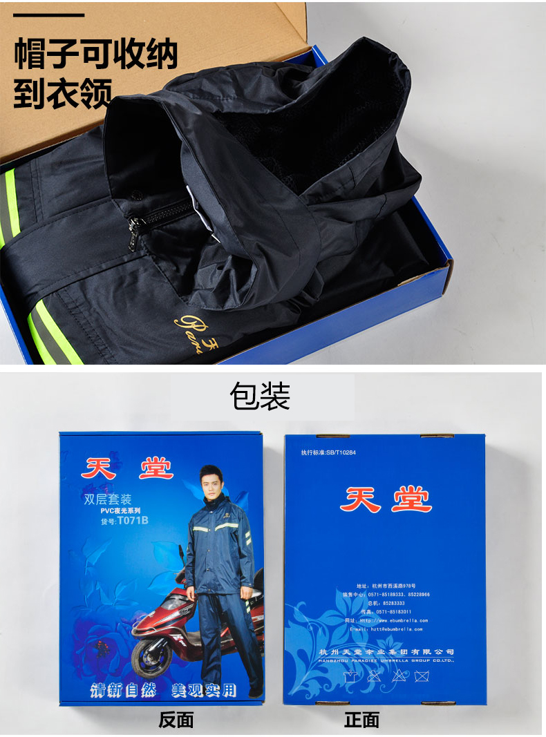 天堂雨衣套装雨衣双层分体式防水雨衣保暖服摩托车雨衣电动车雨披分体成人雨衣男女通用骑行时尚户外摩托车雨 71B X L码 自营
