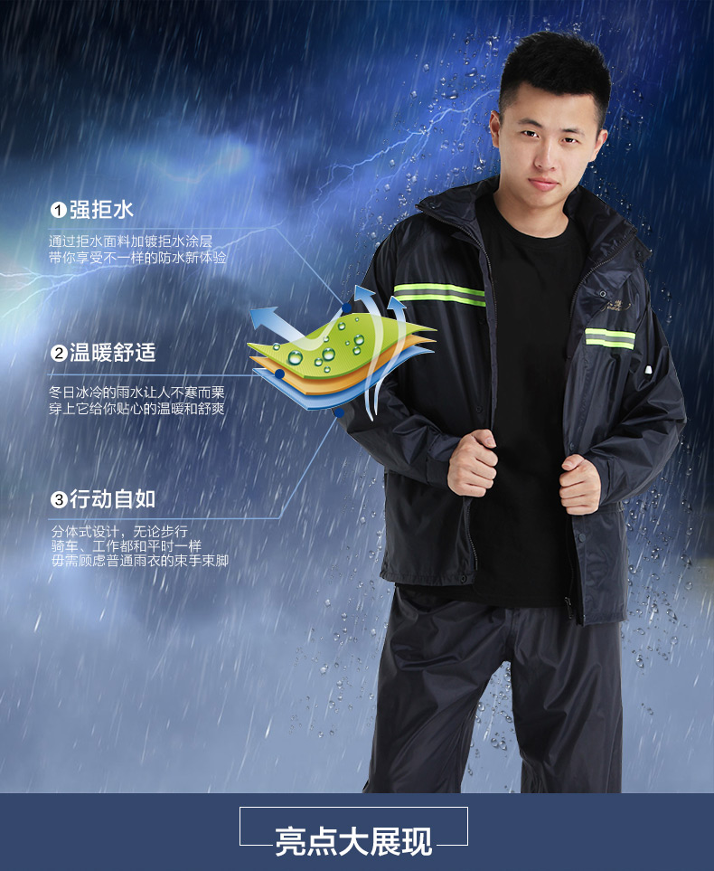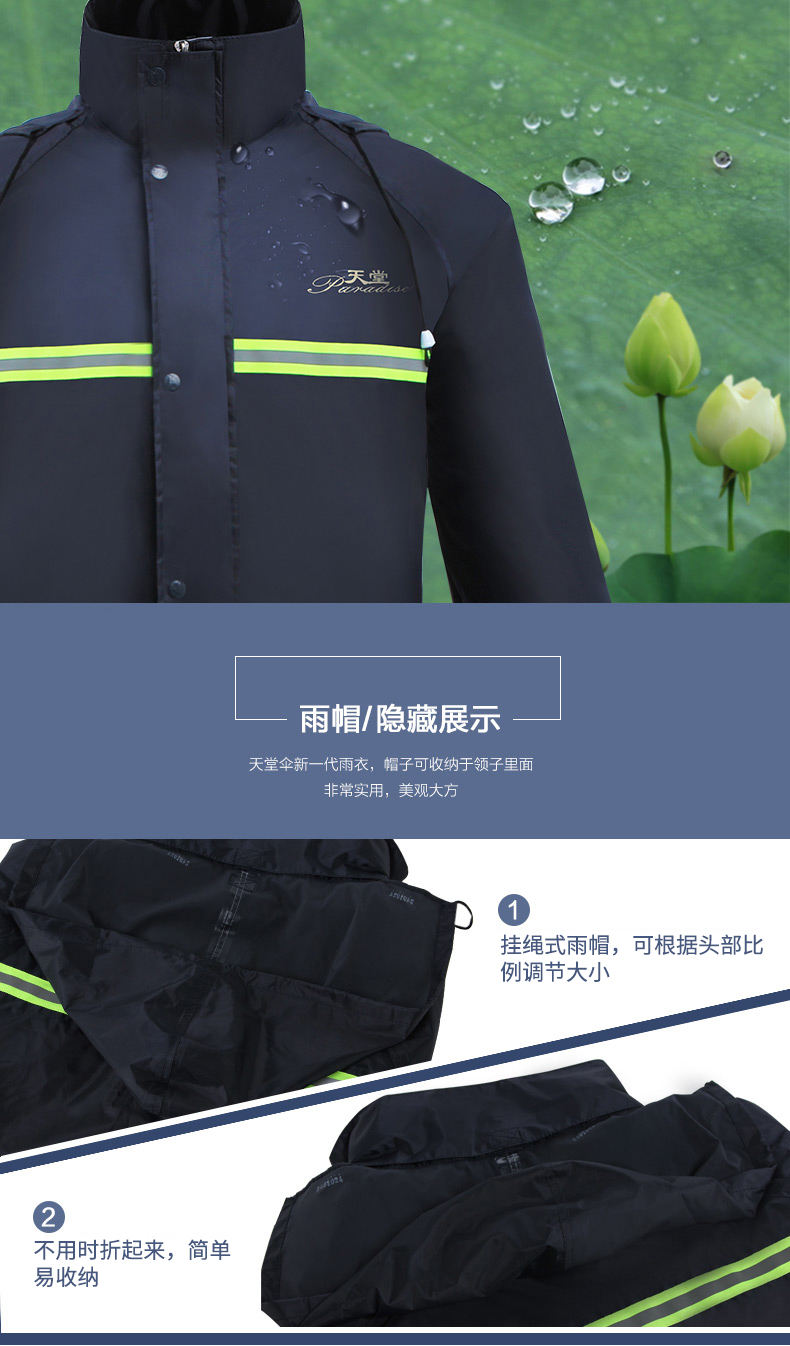 天堂雨衣雨裤套装分体式摩托车雨衣男女成人电动车骑行雨衣双层户外自行车外卖雨披防雨衣带反光条 自营
