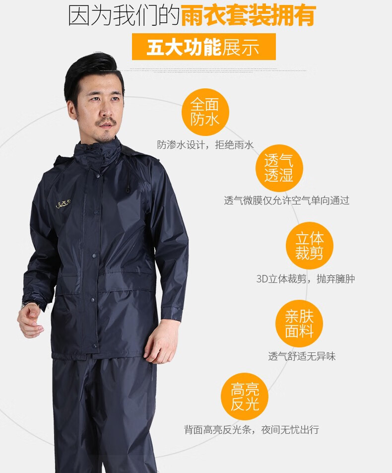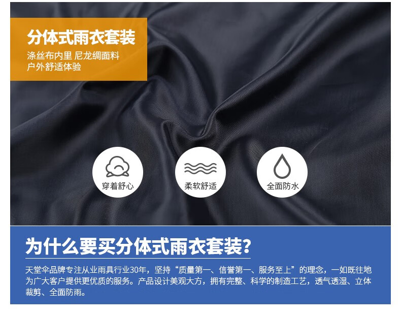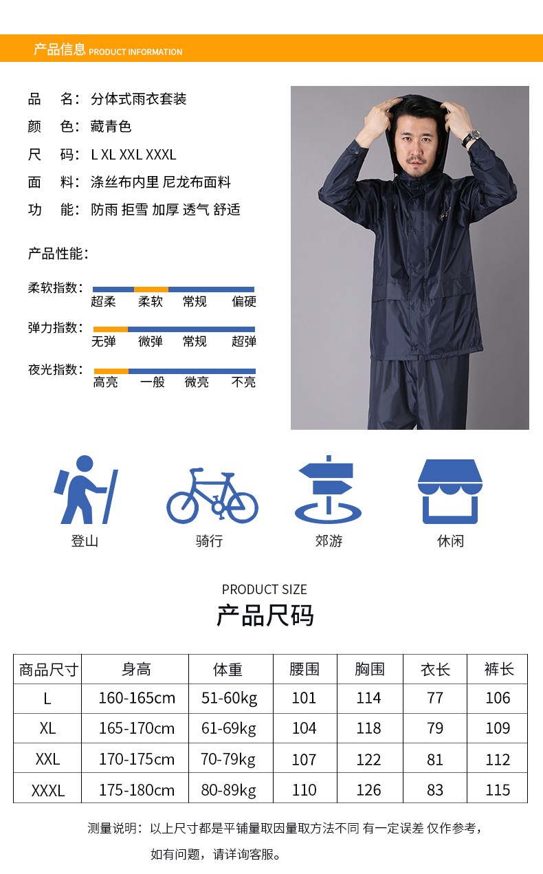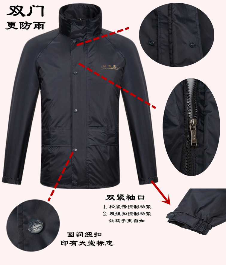 天堂雨衣雨裤套装男女士双层防水电动瓶车自行车摩托车快递外卖衣服分体雨衣柔软骑行成人徒步登山雨披衣 新款升级加厚布料 XL 自营