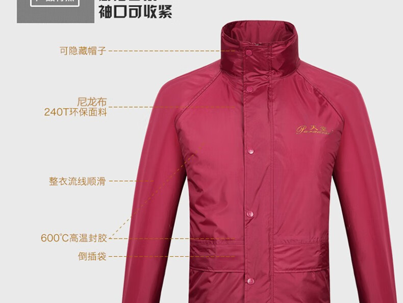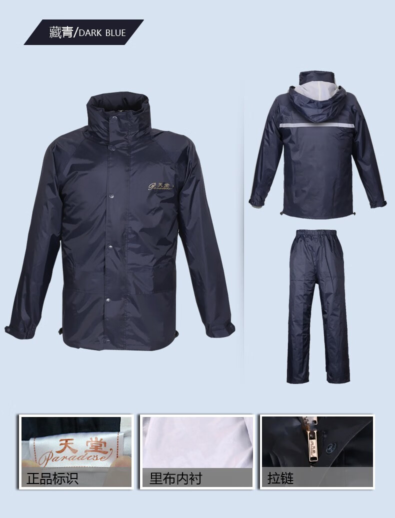 天堂雨衣雨裤套装双层电动车摩托车分体雨衣加厚成人户外防水雨披 藏青色 XL(适合身高170-175cm) 自营