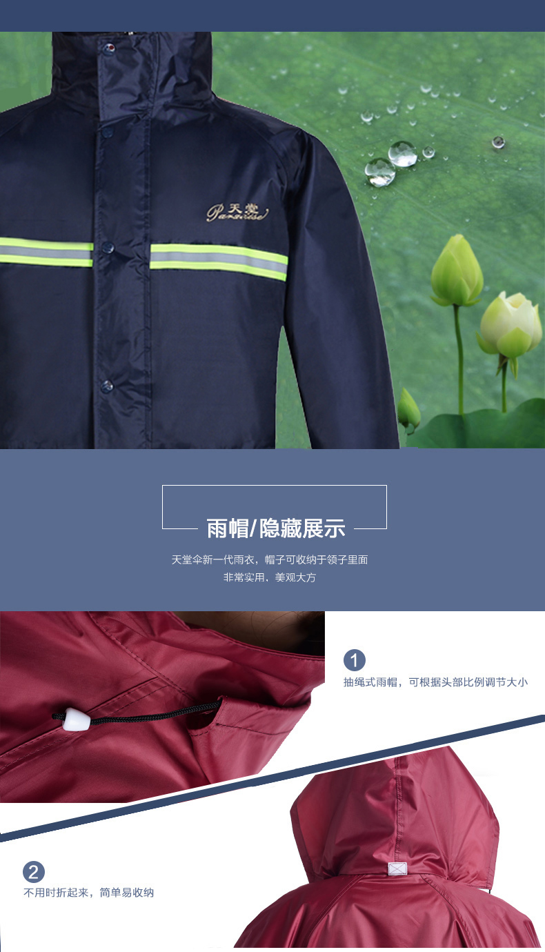 天堂雨衣雨裤套装电动车摩托车双层加厚雨披男女式分体雨衣7AX 藏青 xxxxl 自营