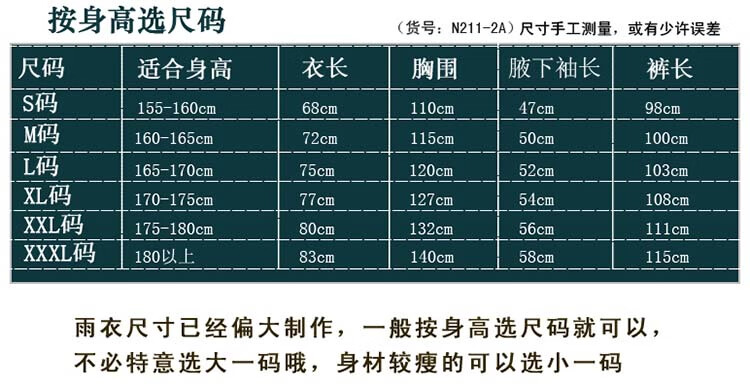 天堂 企业专享 雨衣雨裤套装双层骑行分体雨衣N211-2A 50套起订 自营