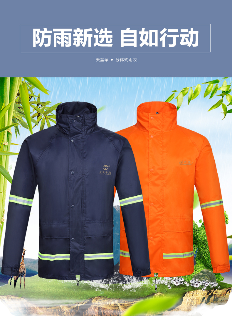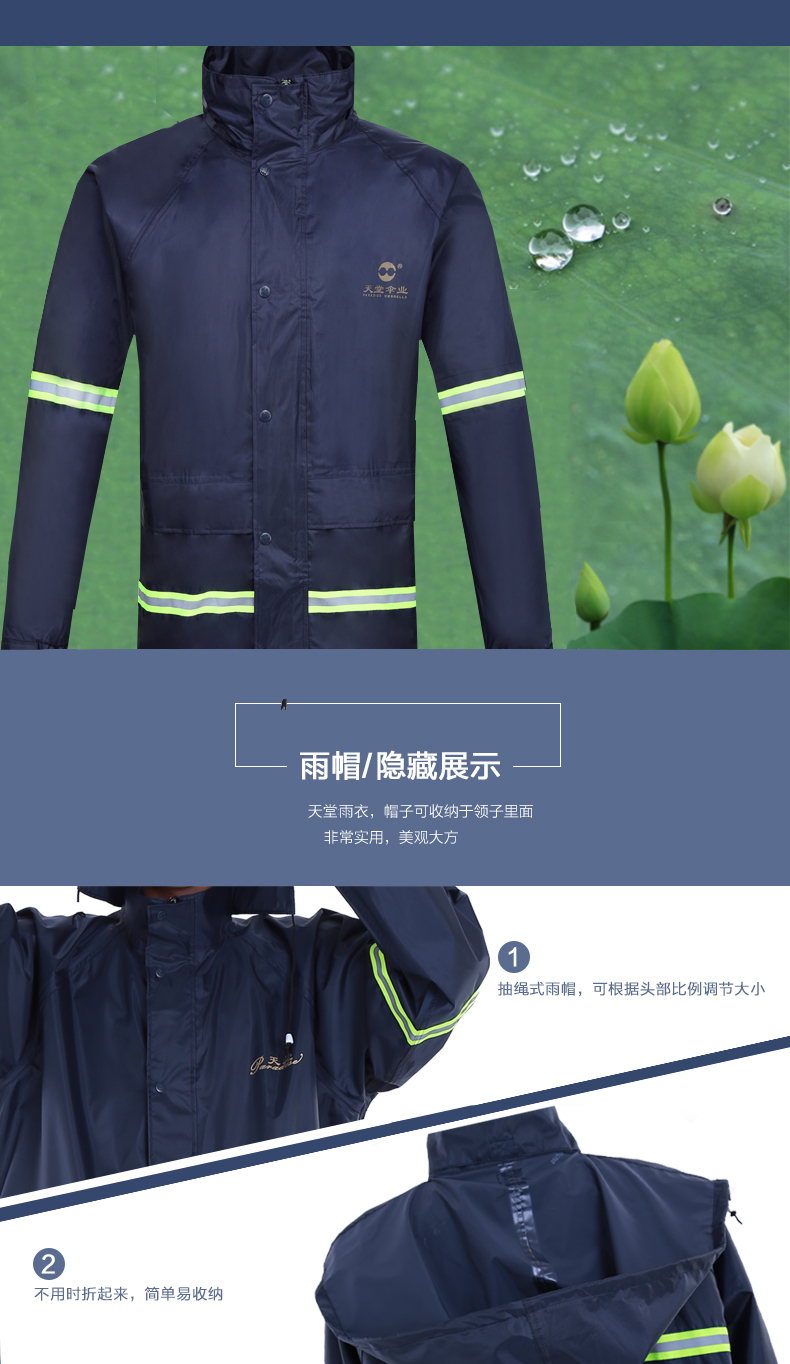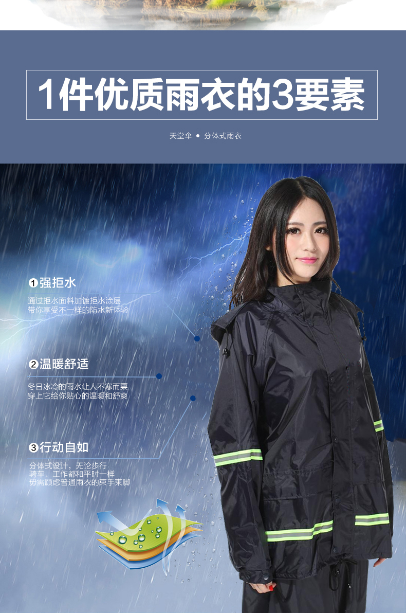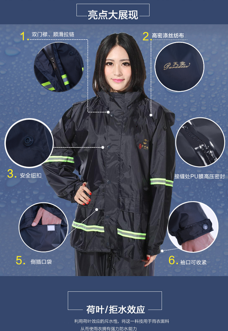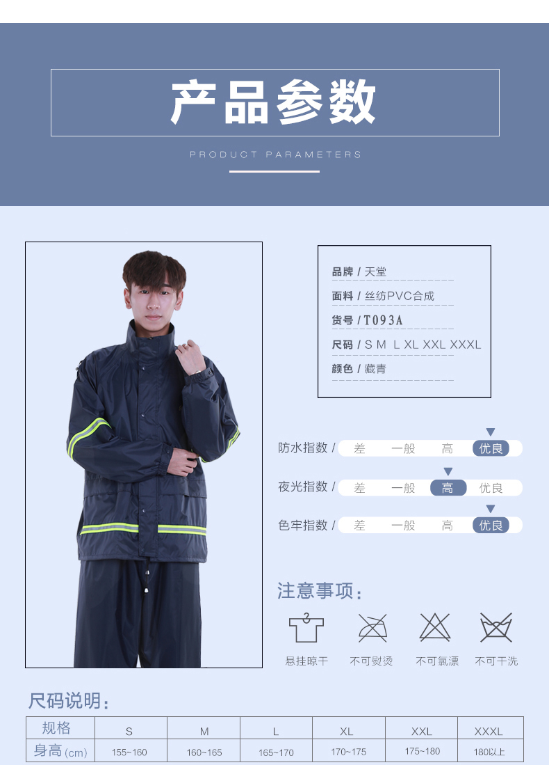 天堂雨衣雨裤套装双层加厚男女式成人分体桔黄色雨衣户外防水服T093A防风防雨晴雨二用 藏青 M 自营