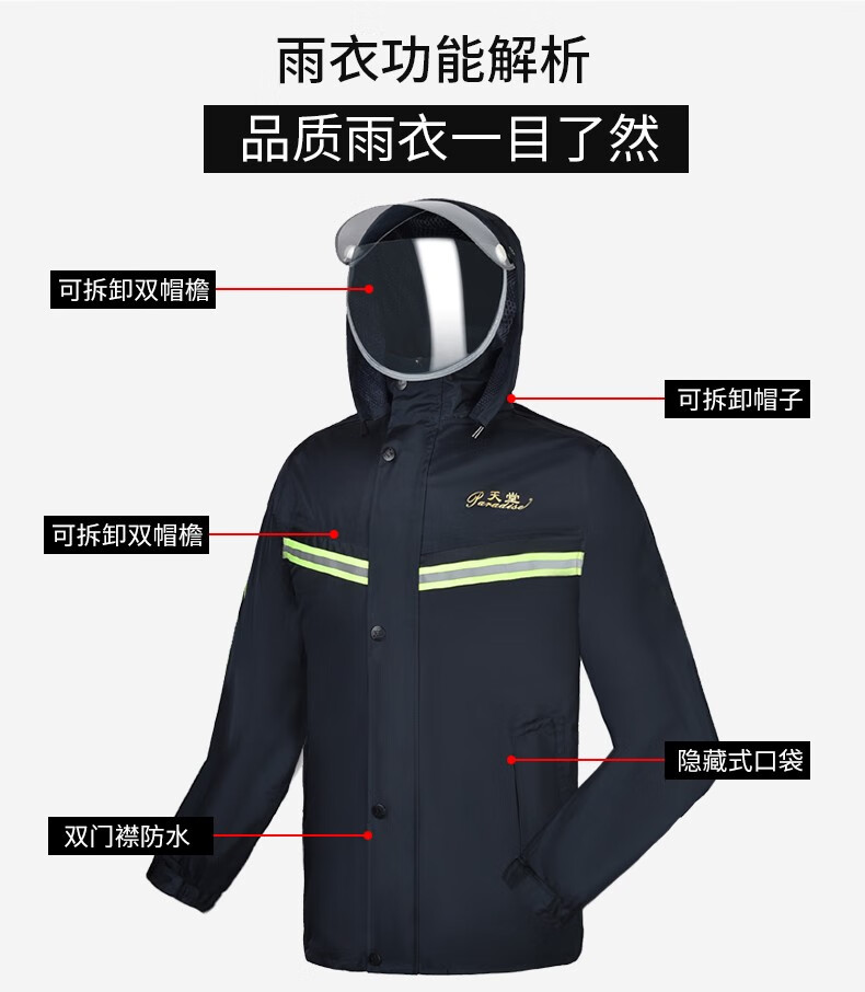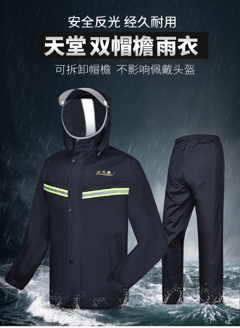 天堂雨衣雨裤套装双层加厚电动摩托车男性女分体长款全身防暴雨披 M码(160-165)071升级双帽檐 自营