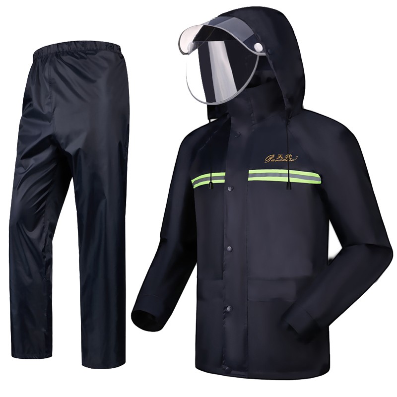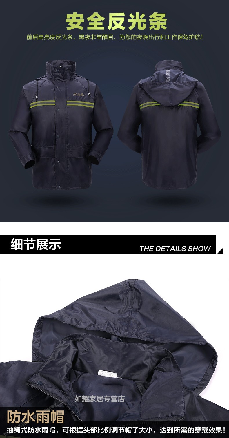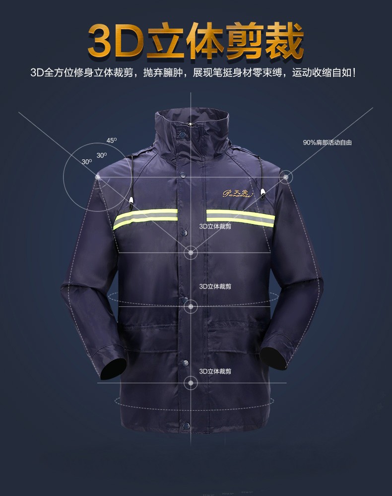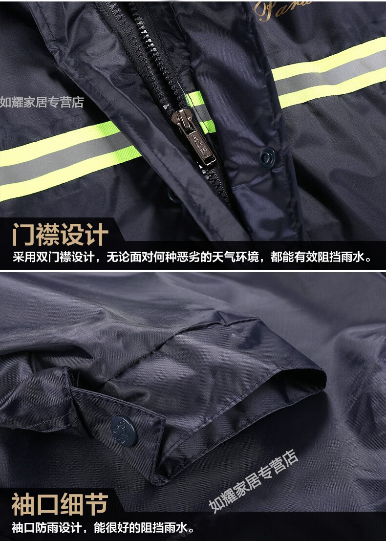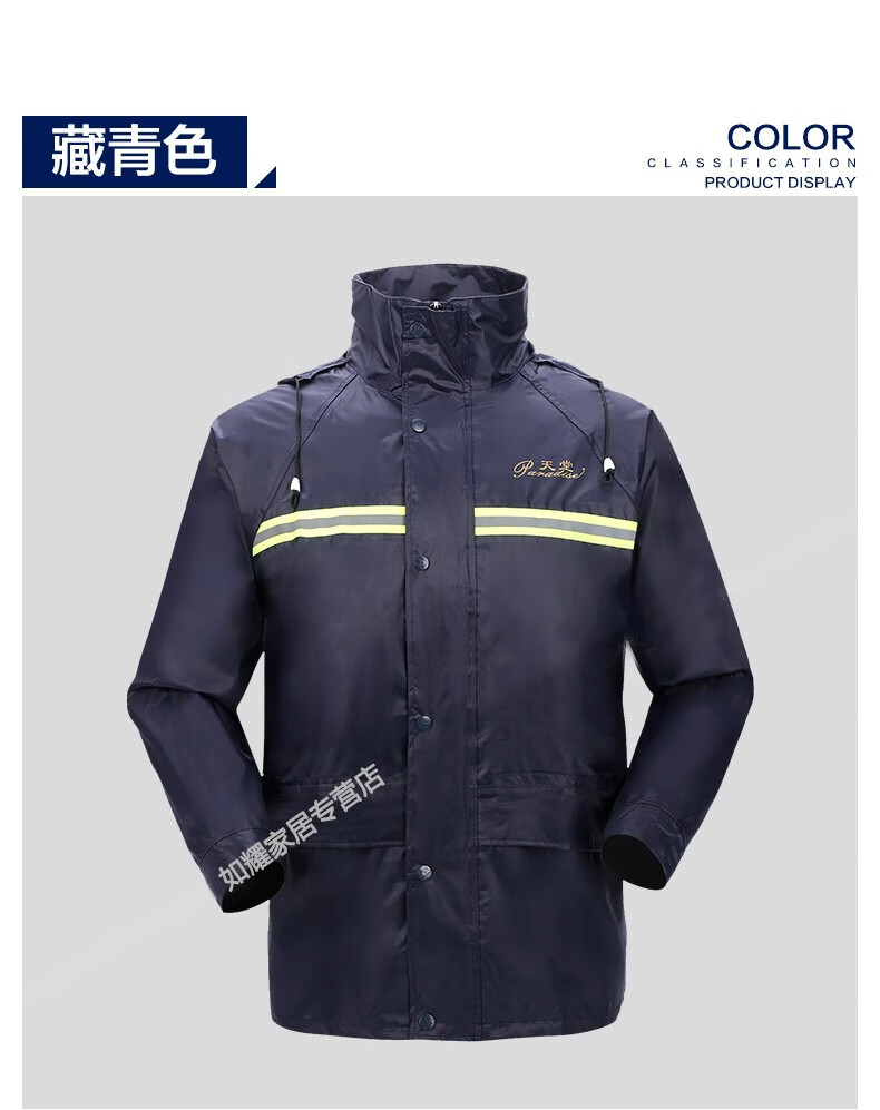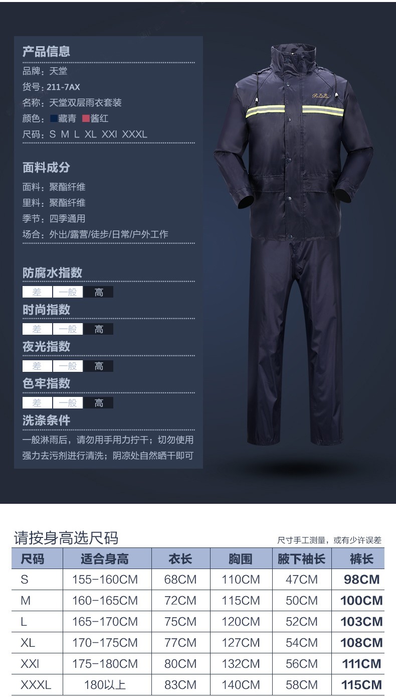 天堂雨衣套装双层加厚保暖服分体执勤雨衣雨裤套装安全反光条长款交通环卫作业户外骑行制式摩托车雨衣 雨衣7Ax-XL 藏青色 自营