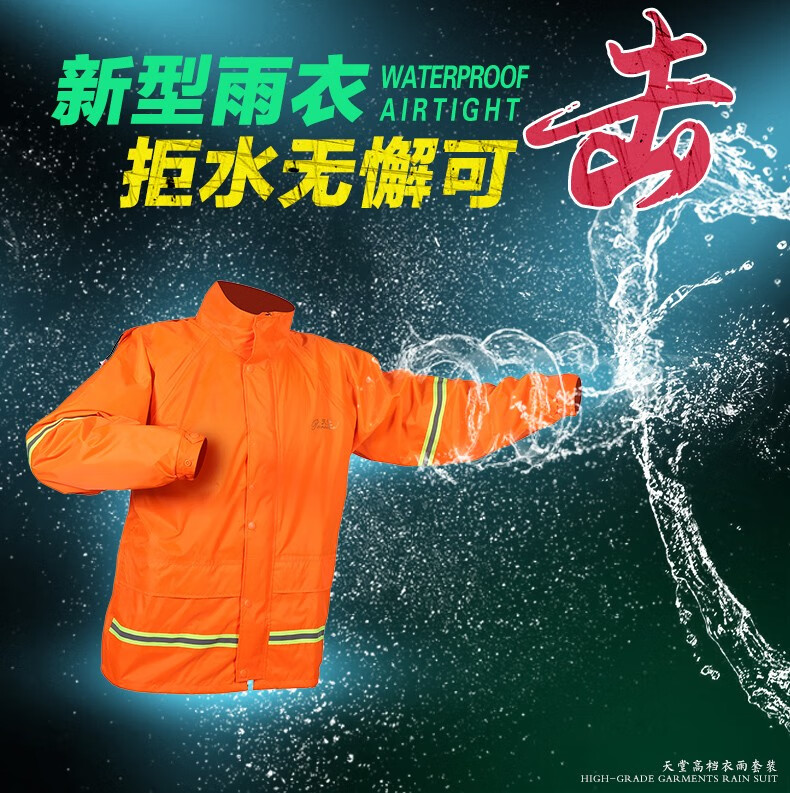 天堂雨衣雨裤套装电动车摩托车双层加厚雨披男女式成人分体雨衣保暖服透气骑行雨衣定做广告印logo字 T093A-桔色 XXXL 自营
