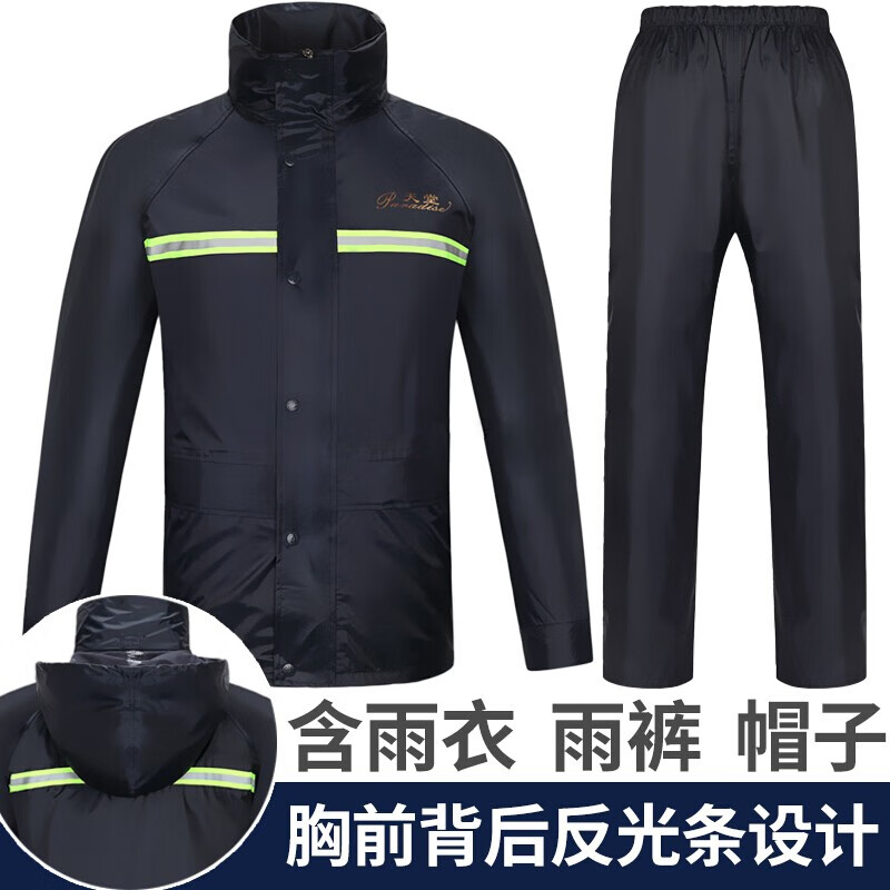 天堂伞 雨衣雨裤分体套装电动车电瓶车摩托车带夜光条男女款防水防风雨披 1A/2A特藏青XL码