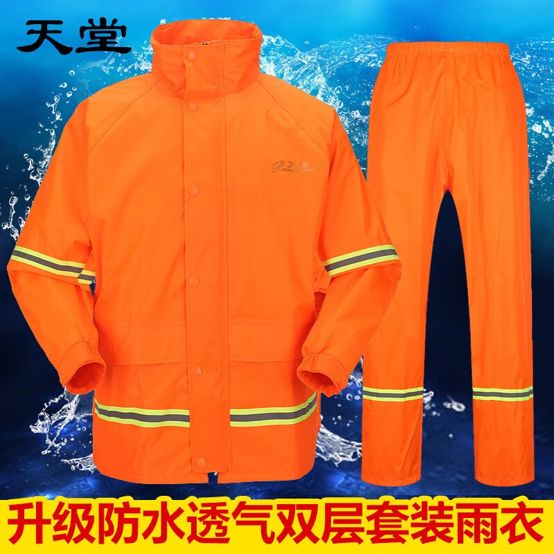 天堂雨衣雨裤套装男女士双层电动车摩托车电瓶车雨披分体式透气环卫工作服耐磨定制印刷广告LOGO 橘红 XL