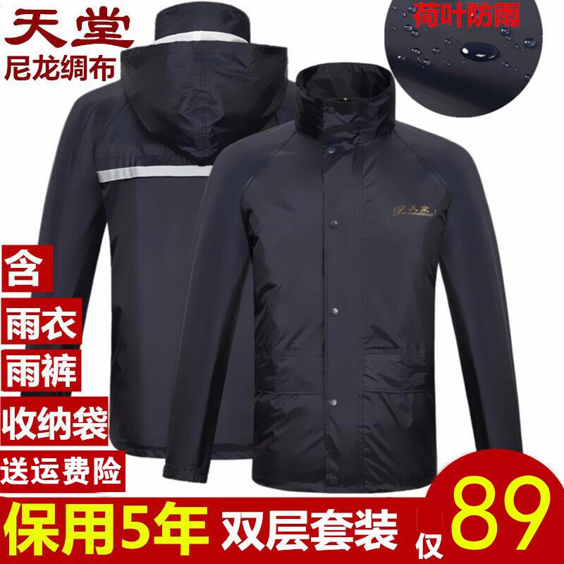 天堂雨衣雨裤套装分体式摩托车雨衣男女成人电动车骑行雨衣双层户外自行车外卖雨披防雨衣带反光条