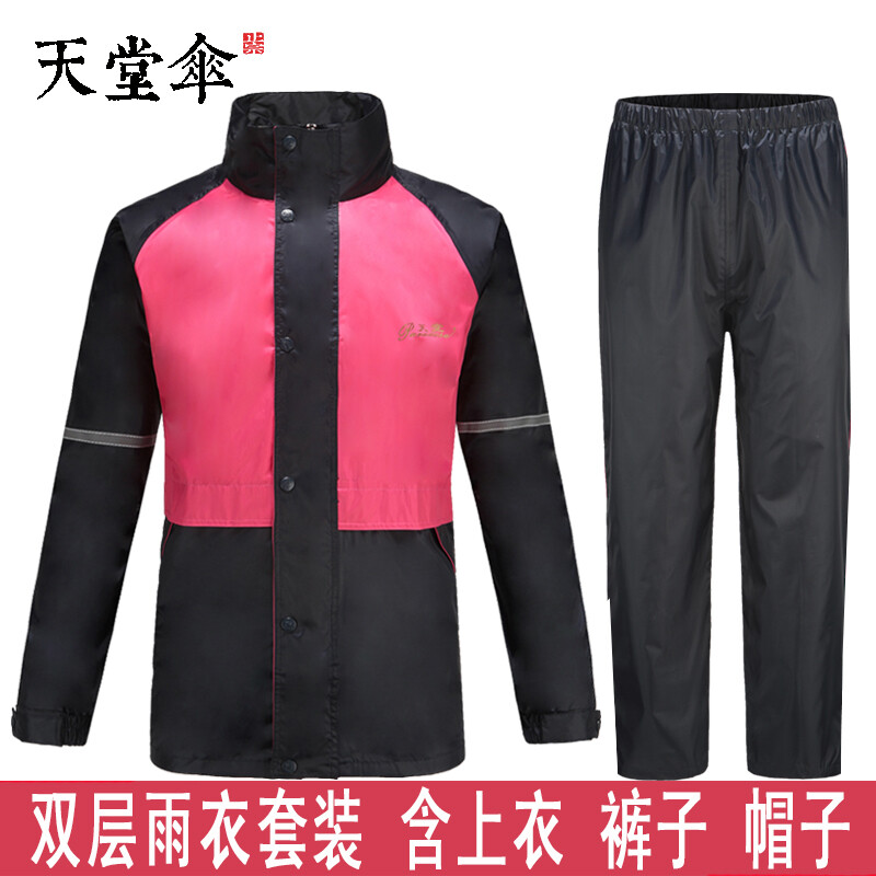 天堂雨衣雨裤套装电动车摩托车双层加厚雨披男女式成人分体雨衣T095A 水红/藏青 M