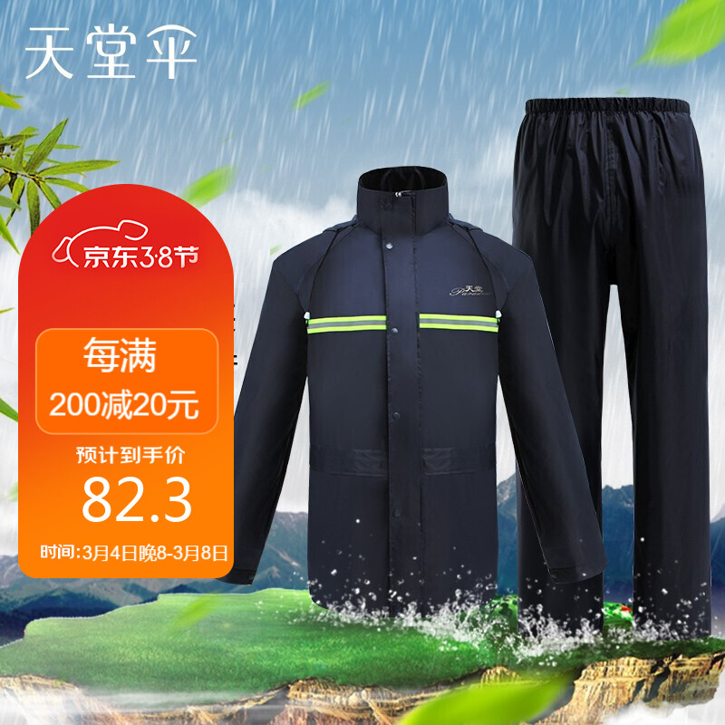 天堂伞 雨衣雨裤分体套装电动车电瓶车摩托车前后夜光条男女款防风雨披 7AX藏青L码