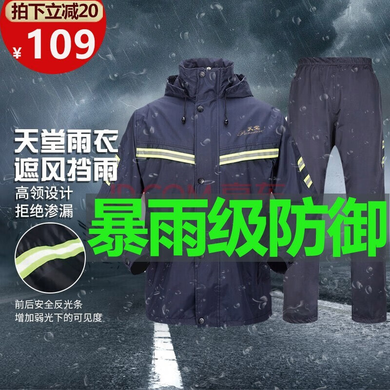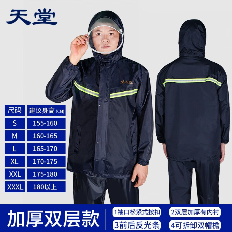 天堂雨衣雨裤套装防水男士加厚全身电瓶车摩托车分体成人骑行雨衣 藏青色(加厚双帽檐安全夜光J18) L(建议166-175)