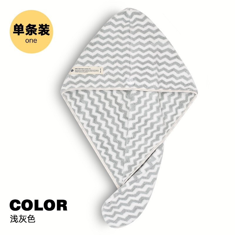 三利干发帽 柔软强吸水可爱擦头发浴帽包头速干毛巾 1条-波纹款(A类)浅灰色