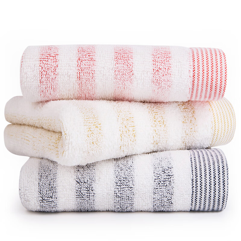 三利 毛巾3条装 纯棉条纹洗脸柔软吸水 33*72cm 红色/蓝色/黄色
