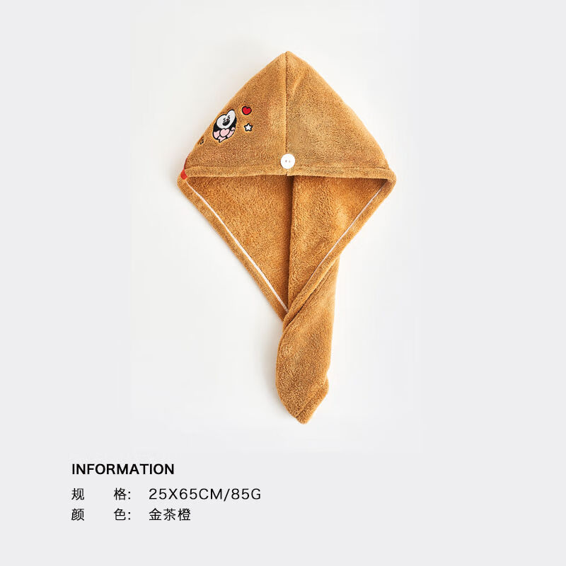 三利 干发帽女超强吸水速干浴帽包头巾可爱洗头巾擦头发速干帽 金茶橙