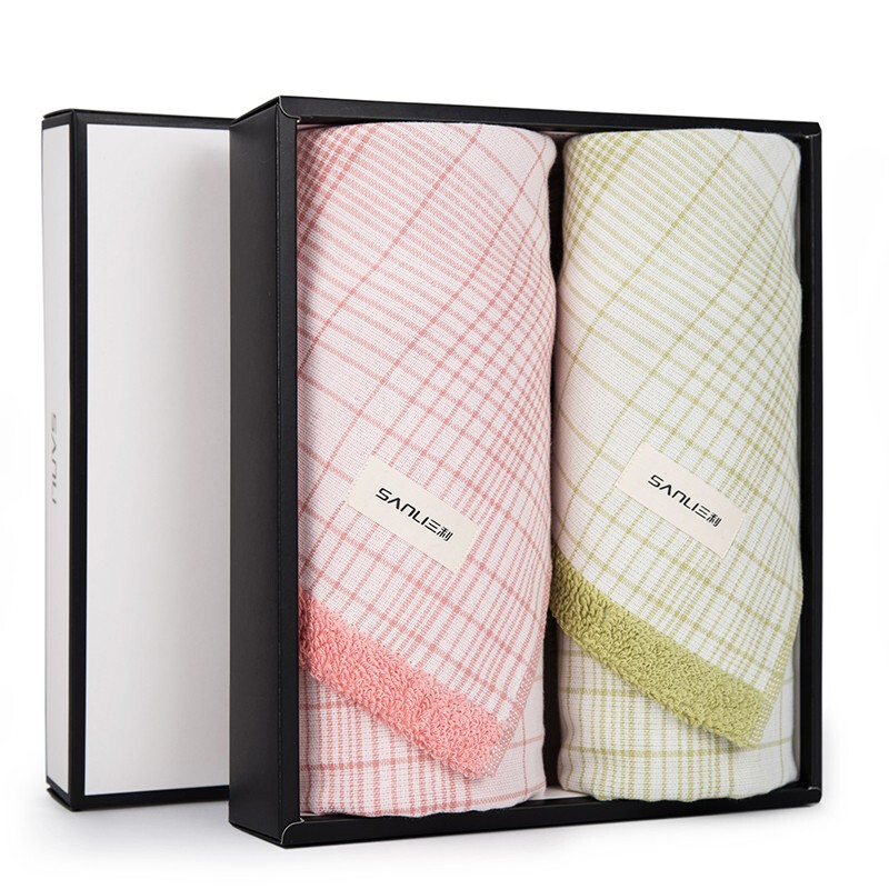 三利毛巾礼盒2条装 纯棉毛巾礼盒套装回礼伴手礼企业礼物员工福利礼品团购毛巾礼盒 纱布格纹-绿色+粉色