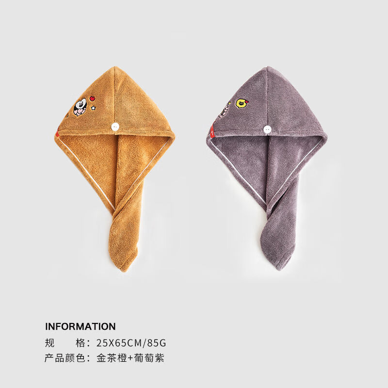 三利 干发帽女超强吸水速干浴帽包头巾可爱洗头巾擦头发速干帽 金茶橙+葡萄紫