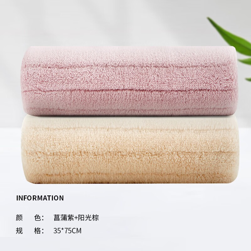 三利高档毛巾批发成人洗脸擦手巾洗澡比纯棉吸水速干发不掉毛面巾 紫色+棕色(2条)