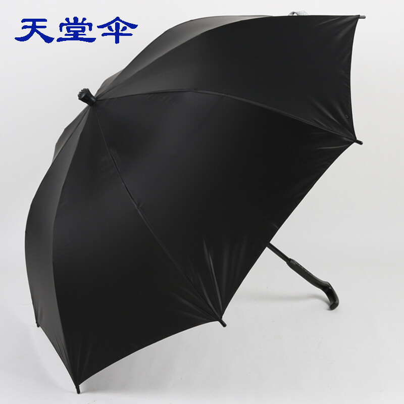 天堂伞老年人拐杖伞弯钩雨伞男女户外防滑直杆伞半自动长柄伞147E 黑色